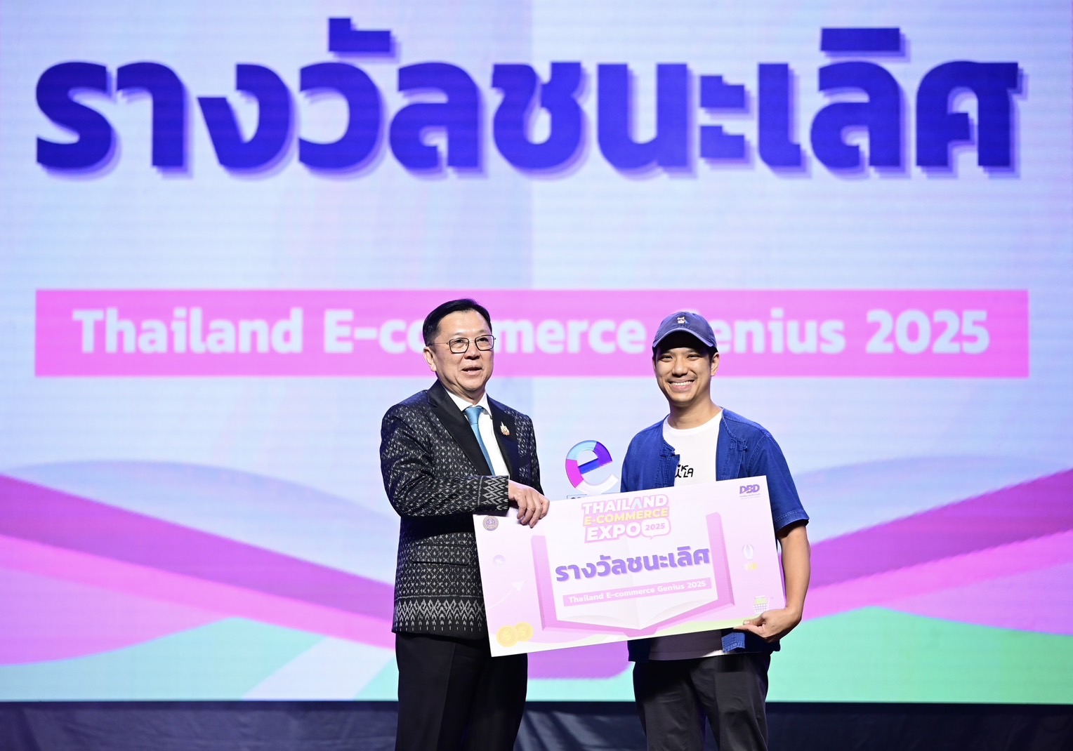 ในวันนี้ยังมีกิจกรรมไฮไลท์อีกหนึ่งกิจกรรมคือ การมอบรางวัล Thailand e-Commerce Genius 2025 ซึ่งเป็นกิจกรรมต่อเนื่องจากโครงการ Online Marketing Genius รุ่นที่ 5 (OMG#5) หลักสูตรเข้มข้นที่จัดต่อเนื่องมาเป็นปีที่ 5 โดยผู้เข้าอบรมได้เรียนรู้การใช้เทคโนโลยี AI การทำคลิปวิดีโอ การปักตะกร้า และกลยุทธ์การตลาดออนไลน์ ก่อนจะผ่านกระบวนการคัดกรองอย่างเข้มข้น จนได้ผู้เข้าร่วมกิจกรรม One-on-One Coaching ระยะเวลา 1 เดือนเต็มกับผู้เชี่ยวชาญด้านดิจิทัลมาร์เก็ตติ้ง จำนวน 50 ราย และคัดเหลือ 10 รายสุดท้าย สู่รอบชิงชนะเลิศครั้งนี้