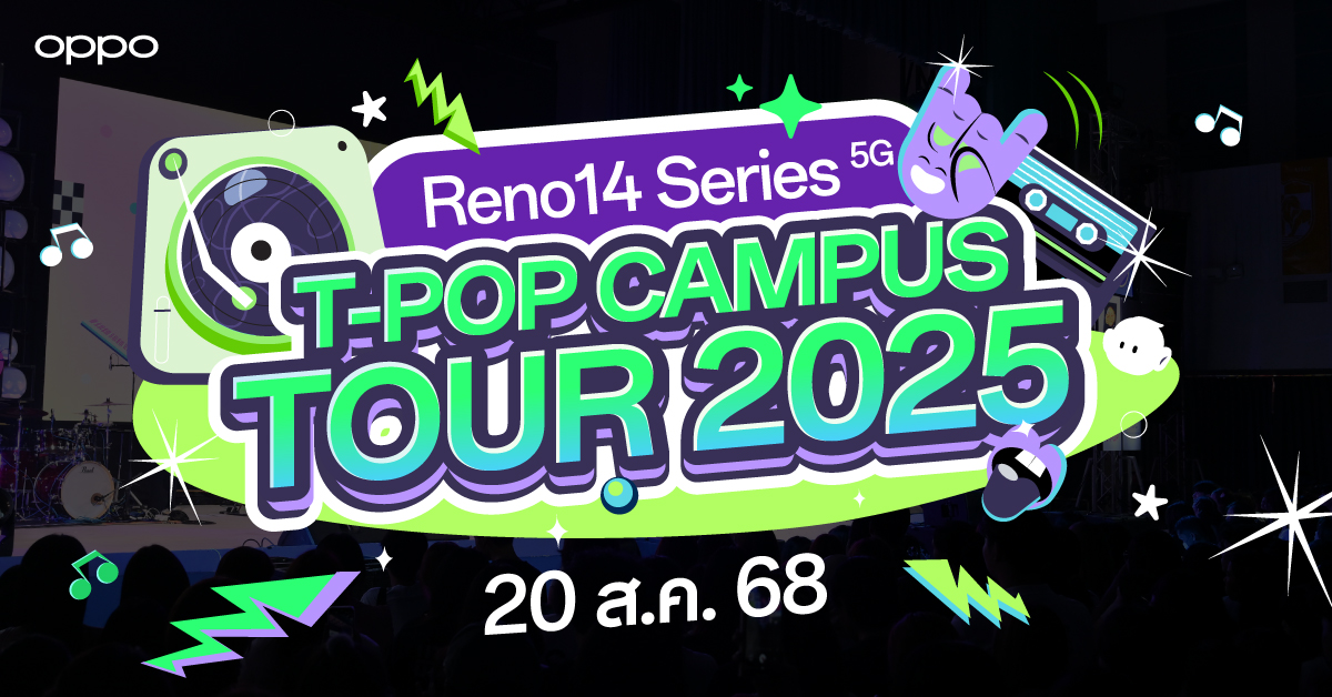 ออปโป้ ประเทศไทย ส่งต่อความสนุกและโมเมนต์สุดฟินให้คนรุ่นใหม่กับ T-POP Campus Tour 2025 อย่างต่อเนื่อง โดยในวันที่ 20 สิงหาคมนี้ เตรียมพบกับคอนเสิร์ตสุดมันส์ที่มหาวิทยาลัยศิลปากร วิทยาเขตสารสนเทศเพชรบุรี พร้อมกิจกรรมสุดพิเศษ และของรางวัลมากมายกลับไปด้วย!