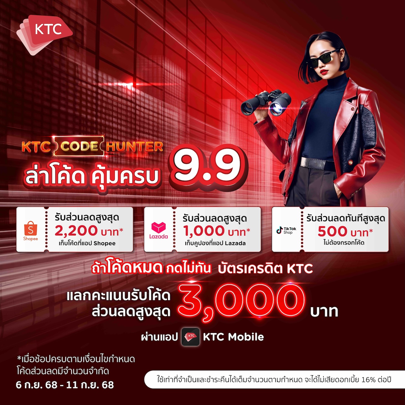 นายณัฐสิทธิ์ สุนทราณู ผู้บริหารสูงสุด ฝ่ายการตลาดบัตรเครดิต “เคทีซี” กล่าวว่า “เคทีซีเข้าใจพฤติกรรมผู้บริโภคยุคใหม่ที่ต้องการความสะดวกและตัวช่วยในการบริหารค่าใช้จ่าย เราจึงเดินหน้าตอกย้ำความเป็นผู้นำตลาด ด้วยสิทธิพิเศษครบทุกแพลตฟอร์ม ทั้ง Shopee, Lazada และเป็นรายแรกที่มีโค้ดส่วนลดบน TikTok Shop ภายใต้แนวคิด ‘KTC Code Hunter’ พร้อมปรับลดยอดใช้จ่ายขั้นต่ำในการผ่อนชำระต่อรายการที่ Shopee เหลือเพียง 1,500 บาทต่อรายการ (เฉพาะสินค้าและร้านค้าที่ร่วมรายการ) เพื่อให้สมาชิกใช้จ่ายได้คล่องตัวมากขึ้น โดยในช่วง 9.9 Mega Sale เดือนกันยายน 2568 นี้ เคทีซีจัดเต็ม 3 โปรโมชันใหญ่ดังนี้
