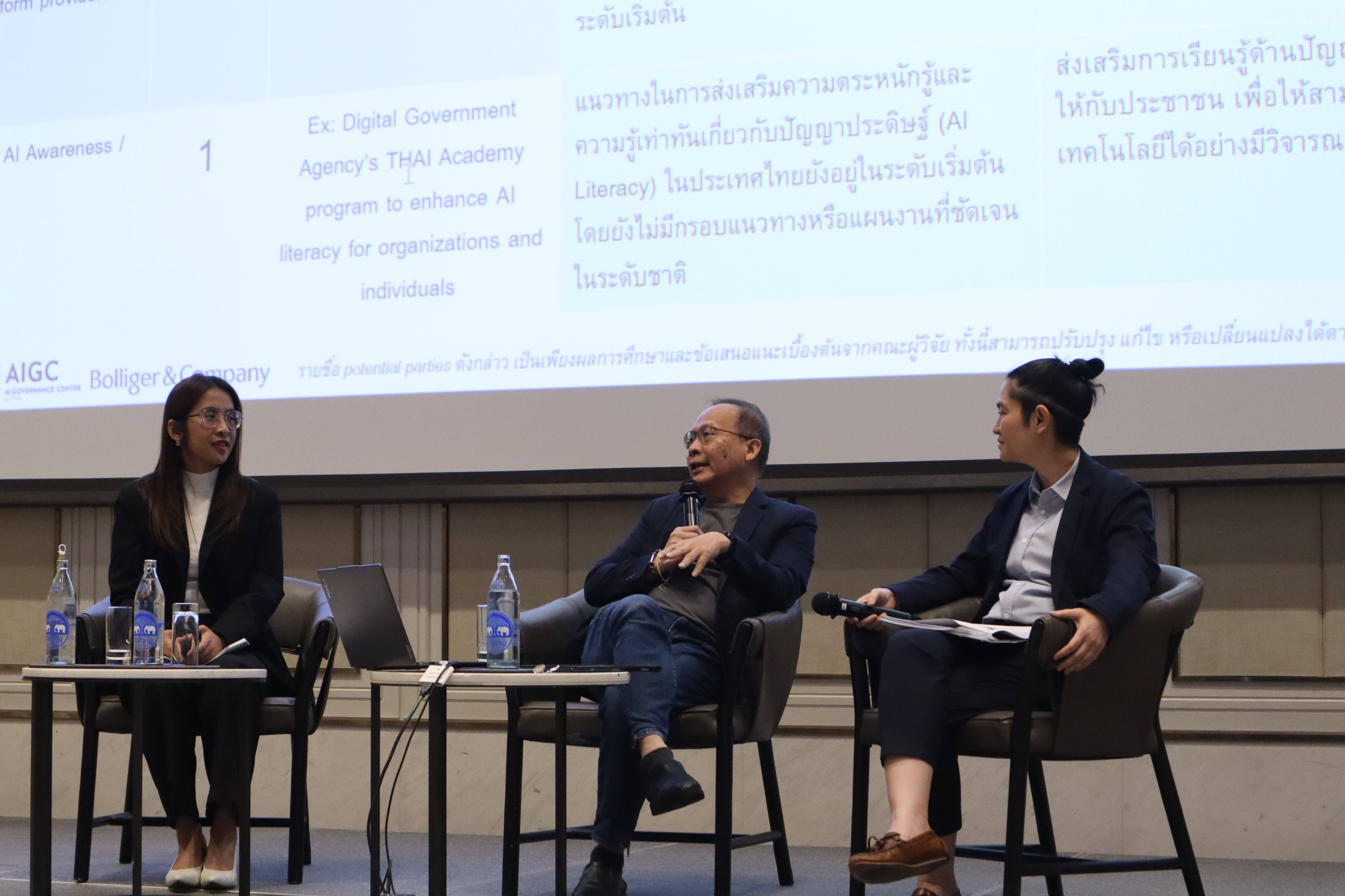 เมื่อเร็วๆ นี้ สำนักงานพัฒนาธุรกรรมทางอิเล็กทรอนิกส์ (สพธอ.) หรือ ETDA ร่วมกับ บริษัท โบลลิเกอร์ แอนด์ คอมพานี (ประเทศไทย) จำกัด จัดการสัมมนาเผยแพร่ผลการศึกษาและข้อเสนอเชิงนโยบาย ณ โรงแรมอีสติน แกรนด์ พญาไท เพื่อนำเสนอผลการศึกษาและระดมความเห็นจากผู้มีส่วนเกี่ยวข้องในระบบนิเวศปัญญาประดิษฐ์ของไทย สู่การกำหนดแผนปฏิบัติการที่สอดคล้องกับหลักจริยธรรมสากล สร้างความเชื่อมั่นในการใช้เทคโนโลยี AI อย่างทั่วถึงและเท่าเทียม การสัมมนาครั้งนี้ถือเป็นก้าวสำคัญในการสังเคราะห์องค์ความรู้และมุมมองจากผู้เชี่ยวชาญกว่า 45 หน่วยงานทั้งภาครัฐและเอกชน เพื่อร่วมกันออกแบบอนาคตการกำกับดูแล AI ของประเทศ