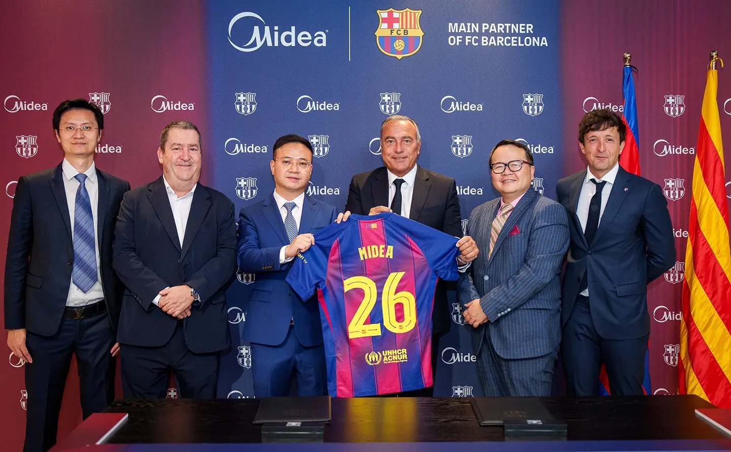 ลูวิส ฝู ประธานฝ่ายธุรกิจระหว่างประเทศของไมเดีย ร่วมลงนามข้อตกลงร่วมเป็นพาร์ทเนอร์หลักกับ ราฟาเอล ยุสเต รองประธานสโมสรฟุตบอลบาร์เซโลนา พร้อมเยี่ยมชมสนามฟุตบอลร่วมกับผู้บริหารระดับสูงของไมเดีย ณ สนาม Spotify Camp Nou บาร์เซโลนา ประเทศสเปน โดยโลโก้ไมเดียจะปรากฏบนแขนเสื้อชุดการแข่งขันและชุดฝึกซ้อมของสโมสรฟุตบอลบาร์เซโลนา รวมถึงการประชาสัมพันธ์แบรนด์อย่างกว้างขวางระหว่างการแข่งขันฟุตบอลลา ลีกาทีมเหย้าอีกด้วย