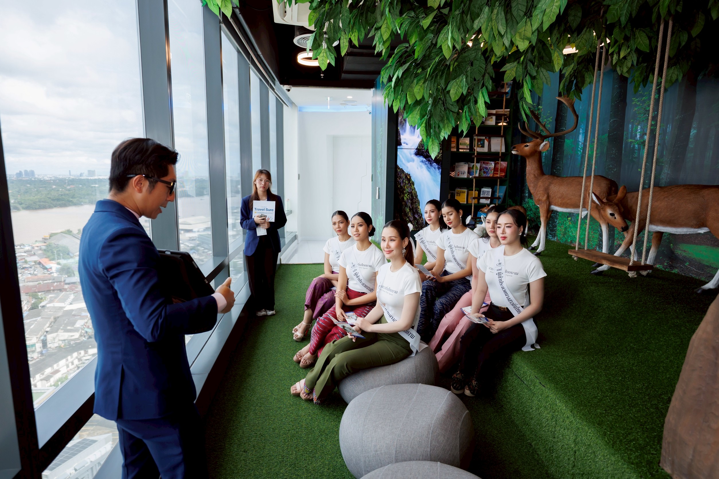 ดร.สมพร สืบถวิลกุล ประธานเจ้าหน้าที่บริหาร บริษัท ทิพย กรุ๊ป โฮลดิ้งส์ จำกัด (มหาชน) และกรรมการผู้จัดการใหญ่ บริษัท ทิพยประกันภัย จำกัด (มหาชน) คุณปนัดดา ชุติโกมล ผู้ช่วยกรรมการผู้จัดการใหญ่ สายงานกิจการองค์กร บริษัท ทิพยประกันภัย จำกัด (มหาชน) พร้อมคณะผู้บริหาร ให้การต้อนรับผู้เข้าประกวด นางสาวถิ่นไทยงาม ประจำปี 2568 ที่เข้าร่วมกิจกรรมเก็บตัว ณ บริษัท ทิพยประกันภัย จำกัด (มหาชน)