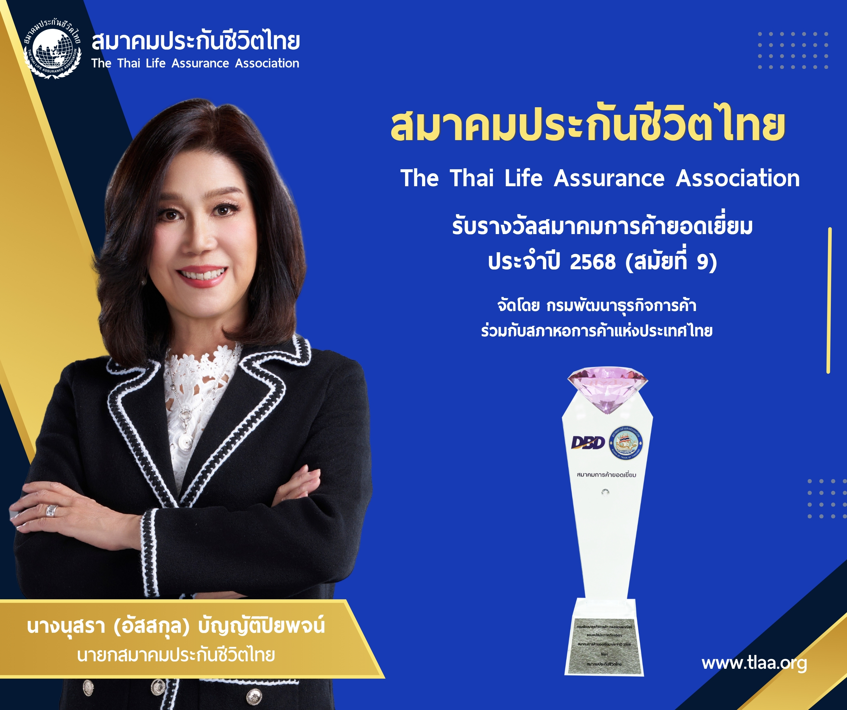 สมาคมประกันชีวิตไทยรับรางวัลสมาคมการค้ายอดเยี่ยม ประจำปี 2025 เป็นสมัยที่ 9 จากนายวุฒิไกร ลีวีระพันธ์ุ ปลัดกระทรวงพาณิชย์ ภายในงานสัมมนาใหญ่สภาหอการค้าแห่งประเทศไทย ประจำปี 2025 The Board of Trade of Thailand Annual Seminar 2025 Unlocking New Growth ศักยภาพใหม่แห่งการเติบโต จัดโดย กรมพัฒนาธุรกิจการค้า ร่วมกับ สภาหอการค้าแห่งประเทศไทย ซึ่งรางวัลดังกล่าวมอบเพื่อเป็นเกียรติแก่สมาคมการค้าที่มีการพัฒนาธุรกิจตามหลักมาตรฐานสากล และมีบทบาทต่อการสร้างประโยชน์ในการเป็นตัวแทนของภาคธุรกิจที่เข้มแข็ง ทั้งยังเป็นการสร้างความตระหนักรู้และกระตุ้นให้สมาคมการค้าเกิดความตื่นตัว เล็งเห็นความสำคัญของบทบาทในการเป็นศูนย์กลางการพัฒนาภาคธุรกิจในแต่ละสาขา นอกจากนี้ยังเป็นต้นแบบของสมาคมการค้า (Best Practice) ที่จะพัฒนาต่อไปและเป็นผู้นำให้กับสมาชิกในการปรับปรุง พัฒนา และยกระดับคุณภาพมาตรฐานการประกอบธุรกิจให้ก้าวเข้าสู่การแข่งขันได้อย่างสง่างาม ณ ห้อง Grand Riverside Ballroom ชั้น 10 โรงแรม Avani+ Riverside Bangkok เมื่อวันที่ 8 กันยายน 2568