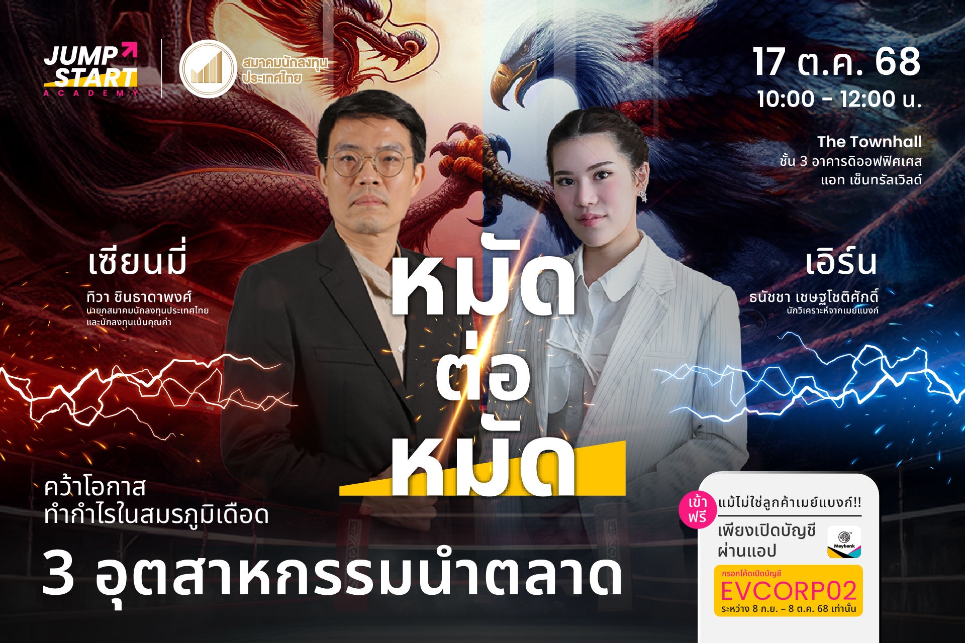 งานสัมมนาจัดขึ้นในวันศุกร์ที่ 17 ตุลาคม 2568 เวลา 10.00 – 12.00 น. ณ The Townhall ชั้น 3 อาคาร The Offices at CentralWorld โดยไม่มีค่าใช้จ่าย ลูกค้าเมย์แบงก์สามารถลงทะเบียนได้ที่แอปพลิเคชัน Maybank Invest ส่วนผู้ที่สนใจสามารถเปิดบัญชีผ่านแอปพลิเคชัน Maybank Invest ด้วยโค้ด “EVCORP02” หรือสอบถามรายละเอียดเพิ่มเติมได้ที่ฝ่ายลูกค้าสัมพันธ์ โทร. 02-658-5000