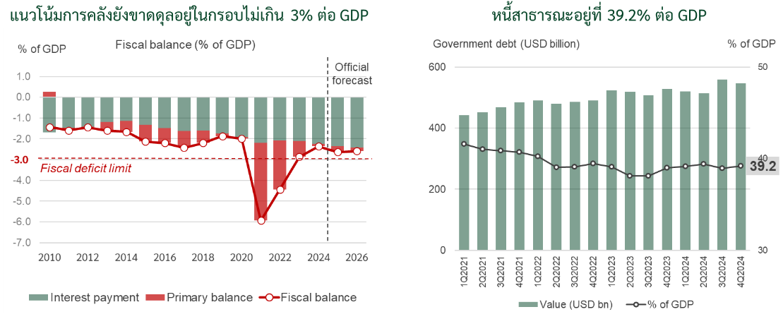 รูปที่ 1: การคลังมีแนวโน้มขาดดุลต่อเนื่องขณะที่หนี้สาธารณะยังอยู่ระดับต่ำ