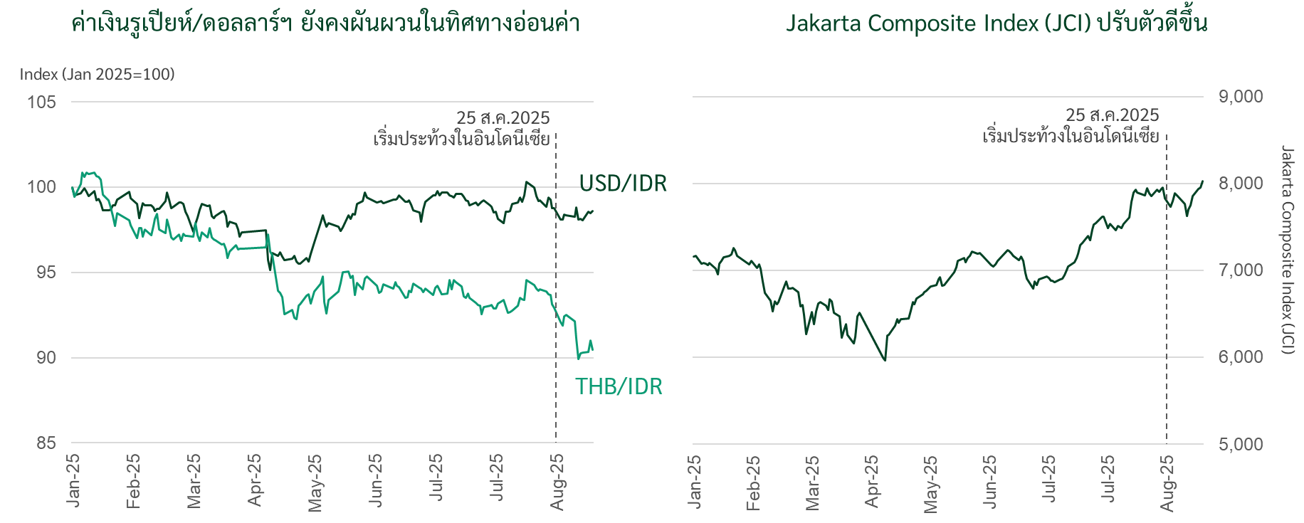 รูปที่ 2: ความเชื่อมั่นนักลงทุนฟื้นคืนแต่ค่าเงินรูเปียห์ยังอ่อนค่าเมื่อเทียบกับต้นปี 2025