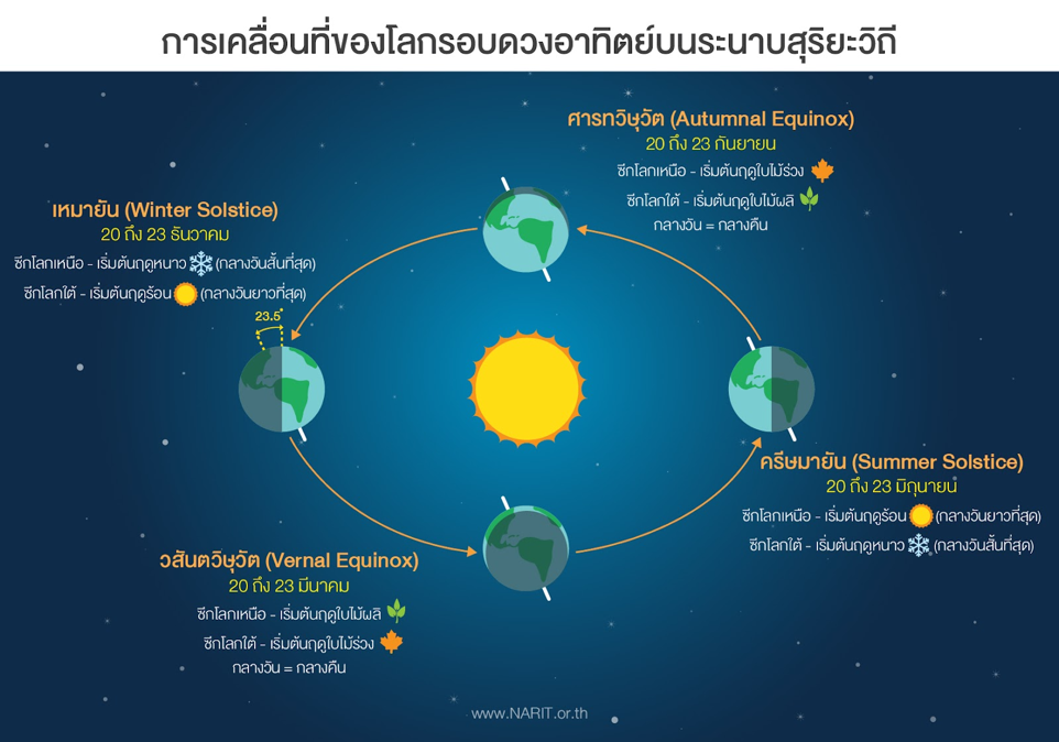 จะเคลื่อนมาอยู่ในตำแหน่งตั้งฉากกับเส้นศูนย์สูตรของโลก ทำให้ดวงอาทิตย์ขึ้นจากขอบฟ้าทางทิศตะวันออก และตกลับขอบฟ้าทางทิศตะวันตกพอดี ส่งผลให้มีช่วงเวลากลางวันและกลางคืนยาวนานเท่ากัน นับเป็นวันเริ่มต้นสู่ฤดูใบไม้ร่วงของประเทศทางซีกโลกเหนือ ในทวีปเอเชียบางประเทศ ยุโรป อเมริกาเหนือ และแอฟริกาตอนเหนือ และเริ่มต้นสู่ฤดูใบไม้ผลิของประเทศทางซีกโลกใต้ ในทวีปอเมริกาใต้บางประเทศ แอฟริกาตอนใต้ ออสเตรเลีย นิวซีแลนด์ และหมู่เกาะในมหาสมุทรแปซิฟิกใต้