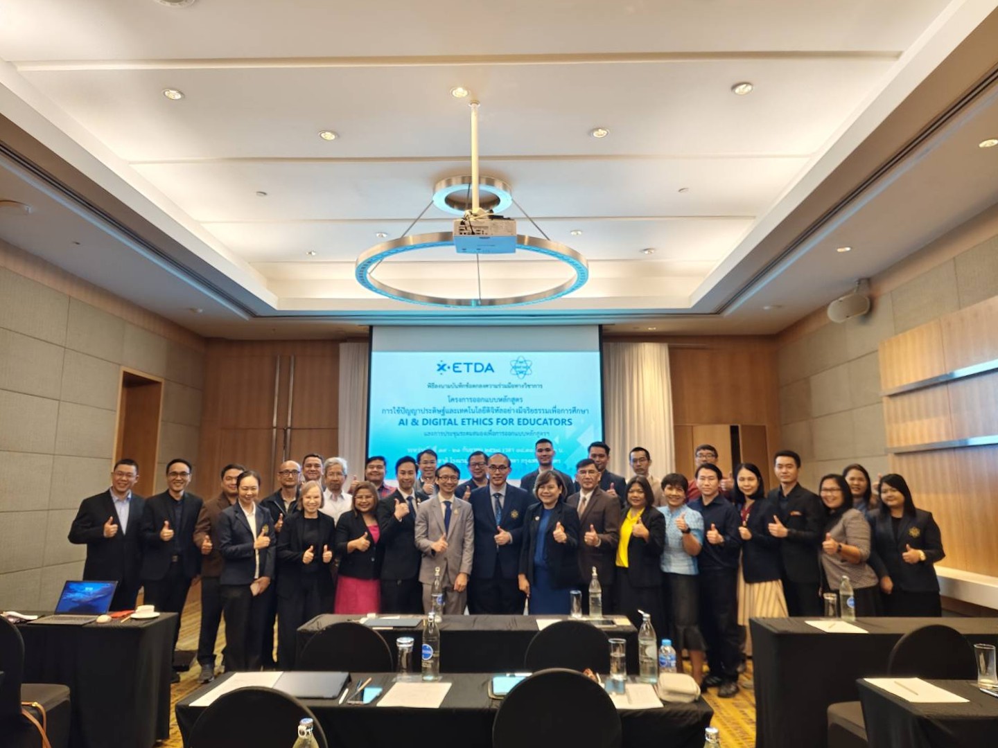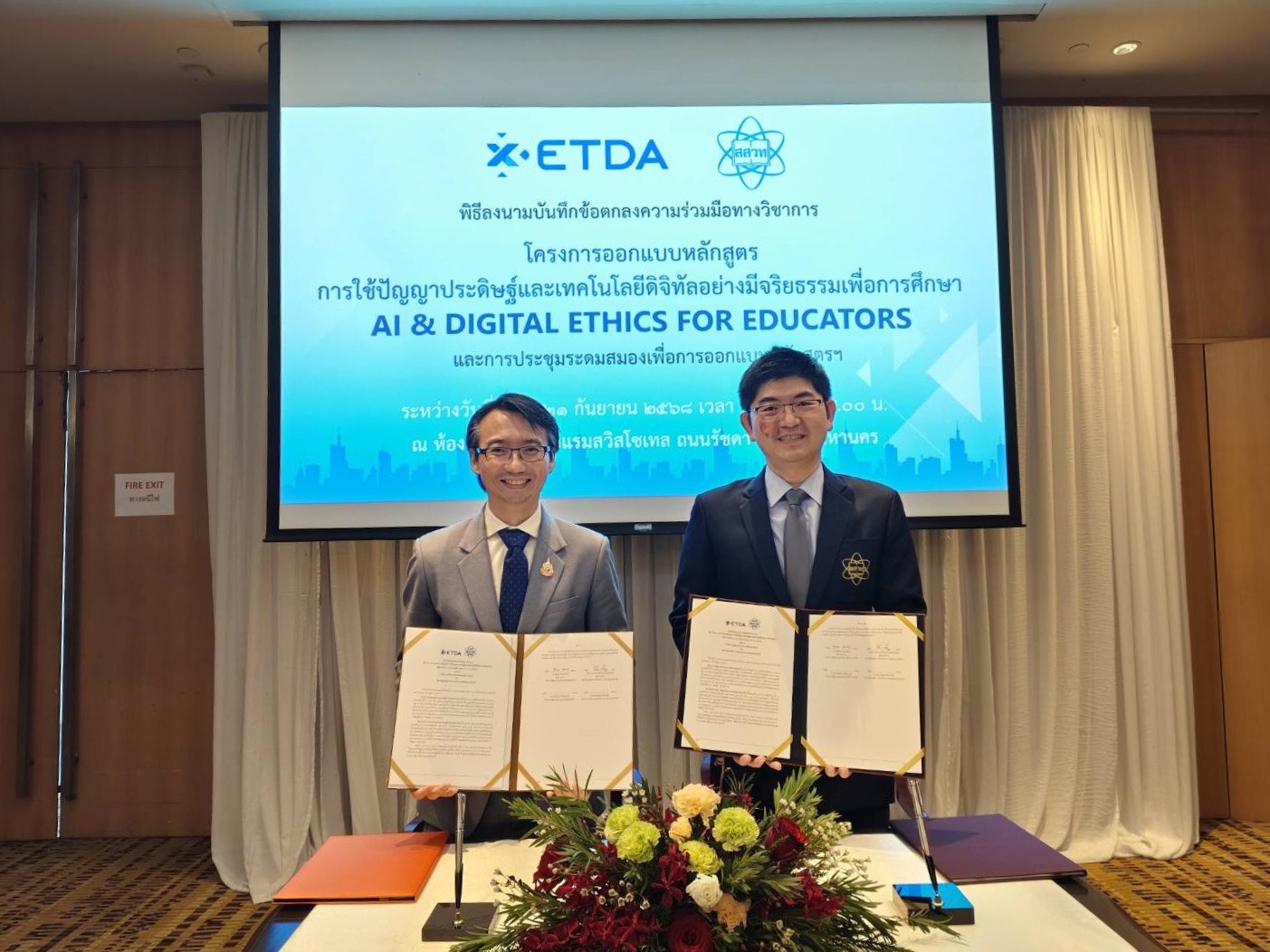 สถาบันส่งเสริมการสอนวิทยาศาสตร์และเทคโนโลยี (สสวท.) โดย รองศาสตราจารย์ ดร.ธีระเดช เจียรสุขสกุล ผู้อำนวยการ สสวท. และ สำนักงานพัฒนาธุรกรรมทางอิเล็กทรอนิกส์ (สพธอ.) หรือ ETDA โดย ดร.ชัยชนะ มิตรพันธ์ ผู้อำนวยการ สพธอ. ได้ร่วมลงนามบันทึกข้อตกลงความร่วมมือทางวิชาการ “โครงการออกแบบหลักสูตรการใช้ปัญญาประดิษฐ์และเทคโนโลยีดิจิทัลอย่างมีจริยธรรมเพื่อการศึกษา (AI & Digital Ethics for Educators)” พร้อมด้วย ดร.ชัยวุฒิ เลิศวนสิริวรรณ ผู้ช่วยผู้อำนวยการ สสวท. ดร.จีระพร สังขเวทัย ผู้อำนวยการสาขาเทคโนโลยี สสวท. นักวิชาการ เจ้าหน้าที่ ครู และอาจารย์ผู้ทรงคุณวุฒิหลายท่าน ร่วมประชุมและระดมสมองเพื่อการออกแบบหลักสูตรดังกล่าว ณ ห้องอุบลชาติ โรงแรมสวิสโซเทล กรุงเทพฯ รัชดา