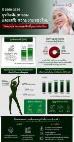 • สำหรับปี 2569 มูลค่าตลาดธุรกิจศัลยกรรมและเสริมความงามของไทยคาดโตราว 1.0% จากจำนวนการใช้บริการที่ชะลอลง ขณะที่การแข่งขันยังคงรุนแรง จากภาวะเศรษฐกิจที่กดดันต่อการทำรายได้และขยายฐานลูกค้า