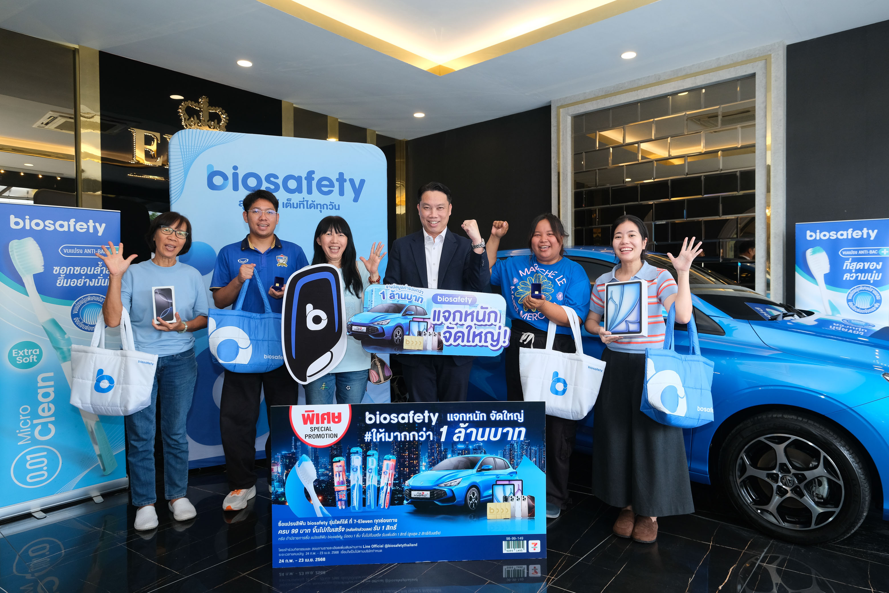 บริษัท ซี.พี.คอนซูเมอร์โพรดักส์ จำกัด ผู้ผลิตและจัดจำหน่ายผลิตภัณฑ์ ไบโอเซฟตี้ (BioSafety) แบรนด์ผู้นำด้านนวัตกรรมผลิตภัณฑ์ดูแลสุขภาพช่องปาก จัดแคมเปญ “ไบโอเซฟตี้ ให้มากกว่า แจกหนักจัดใหญ่” เพื่อคืนกำไรแก่ผู้บริโภค มอบของรางวัลรวมมูลค่ากว่า 1 ล้านบาท ซึ่งถือเป็นอีกหนึ่งกิจกรรมครั้งสำคัญที่สร้างความตื่นเต้นและได้รับการตอบรับจากผู้บริโภคอย่างล้นหลาม ในครั้งนี้ได้รับเกียรติจากคุณจิรายุ ภักดียิ่งยง รองกรรมการผู้จัดการอาวุโส บริษัท ซี.พี.คอนซูเมอร์โพรดักส์ จำกัด เป็นผู้มอบรางวัลใหญ่ รถยนต์ MG3 Hybrid+ มูลค่า 599,000 บาท ให้แก่ผู้โชคดีคุณชลิดา ปานเมทนี ท่ามกลางบรรยากาศแห่งความยินดี