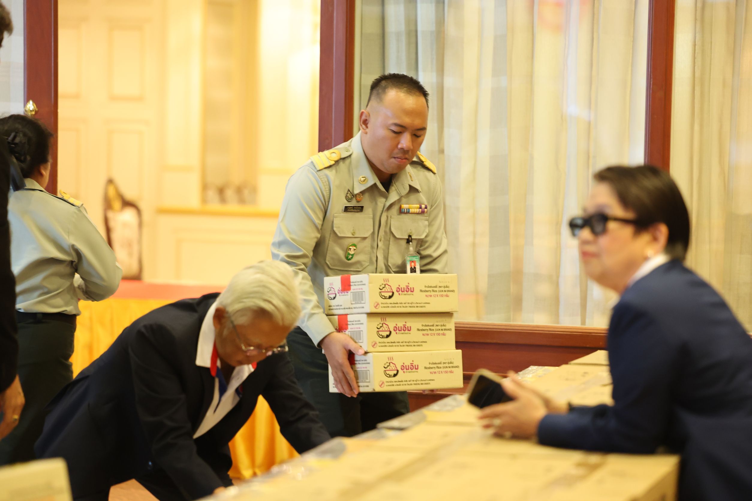 นายฉัตรชัย ศิริไล ผู้จัดการ ธนาคารเพื่อการเกษตรและสหกรณ์การเกษตร (ธ.ก.ส.) มอบข้าวพร้อมทานตรา “อุ่นอิ่ม” ทั้งข้าวหอมมะลิ ข้าวกล้องหอมมะลิ และข้าวไรซ์เบอร์รี่ จำนวนทั้งสิ้น 12,000 ถ้วย ให้แก่กองทัพบก โดยมี พลเอก เอกรัตน์ ช้างแก้ว ประธานคณะที่ปรึกษากองทัพบก เป็นสักขีพยาน และมีพลโท บุญสิน พาดกลาง แม่ทัพภาคที่ 2 เป็นผู้รับมอบ สำหรับนำไปให้กับกำลังพลในพื้นที่ใช้ในการบริโภคเพื่อสนับสนุนการดำเนินงานของหน่วยทหารและเจ้าหน้าที่ในการปฏิบัติภารกิจในพื้นที่ชายแดนเพื่อรักษาอธิปไตยและความสงบให้กับประชาชนและประเทศชาติหรือในการปฏิบัติภารกิจบรรเทาทุกข์เร่งด่วนเพื่อช่วยเหลือประชาชน หลังจากก่อนหน้านี้ข้าวพร้อมทานตรา “อุ่นอิ่ม” ได้ถูกส่งมอบไปยังเจ้าหน้าที่ทหารเพื่อภารกิจในพื้นที่ชายแดนผ่านหน่วยงานต่าง ๆ ไปแล้วกว่า 24,000 ถ้วย โดยข้าวพร้อมทานตรา “อุ่นอิ่ม” ถือเป็นผลิตภัณฑ์ของเกษตรกรที่จัดทำโดยสหกรณ์การเกษตรเพื่อการตลาดลูกค้า ธ.ก.ส. ร้อยเอ็ด (สกต.ร้อยเอ็ด) ที่ ธ.ก.ส. ได้เข้าไปยกระดับสินค้า เพื่อเพิ่มมูลค่าให้กับผลิตภัณฑ์ ตั้งแต่ขั้นตอนการพัฒนาโดยใช้นวัตกรรมและเทคโนโลยีเข้ามาแปรรูปข้าวให้มีคุณภาพ อร่อยได้มาตรฐาน สามารถทานได้ทันที หรืออุ่นในไมโครเวฟเพียง 60 วินาที เพื่อเพิ่มความอร่อย และยังสามารถเก็บในอุณหภูมิปกติได้นานถึง 18 เดือน โดยไม่จำเป็นต้องแช่เย็น ผู้ที่สนใจสามารถสั่งซื้อได้ที่ สกต.ร้อยเอ็ด จำกัด โทร.088-338-2572 โดยมีนายชาคริต ดิเรกวัฒนชัย รองกรรมการผู้อำนวยการสำนักกิจการและสื่อสารองค์กร บริษัท บีอีซี เวิลด์ จำกัด (มหาชน) พร้อมด้วย พลเอก เดชนิธิศ เหลืองงามขำ ผู้อำนวยการองค์การสงเคราะห์ทหารผ่านศึก (ผอ.อผศ.) และหน่วยงานพันธมิตรร่วมในพิธีส่งมอบ ณ อาคาร 2 กองบัญชาการกองทัพบก ถนนราชดำเนินนอก กรุงเทพมหานคร