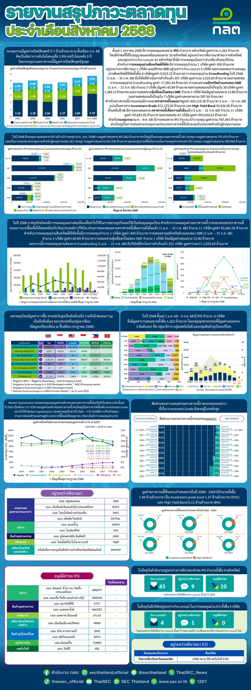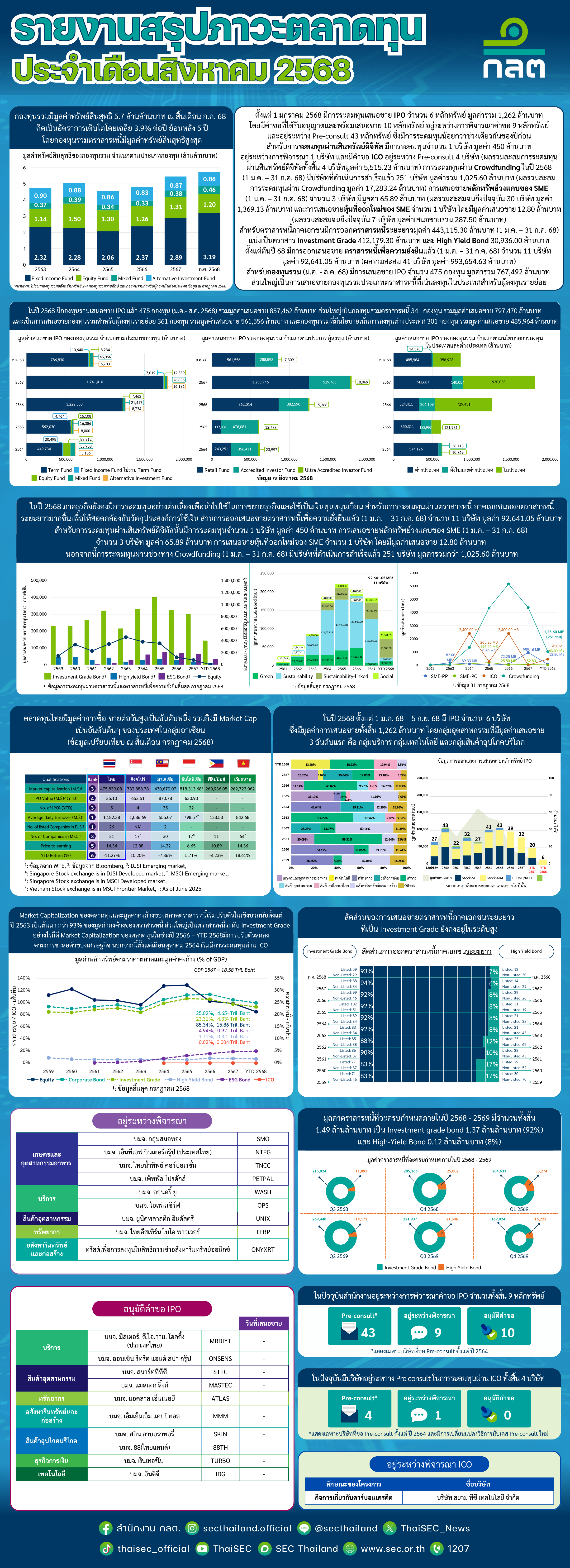 รายงานสรุปภาวะตลาดทุนรายเดือน (ประจำเดือนสิงหาคม 2568)