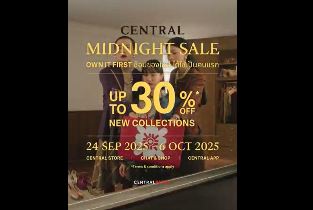 ห้างเซ็นทรัล ในเครือเซ็นทรัล รีเทล เขย่าวงการค้าปลีกไทยส่งท้ายไตรมาส 3 ด้วยปรากฏการณ์งานเซลระดับตำนานที่ทุกคนรอคอย กับ “Central Midnight Sale” (เซ็นทรัล มิดไนต์เซล) ภายใต้คอนเซ็ปต์ “Own it First - ช้อปของใหม่ ได้ใช้เป็นคนแรก” ประกาศพลิกภาพจำของคำว่า “เซล” ให้กลายเป็นเวทีสำหรับ “ผู้นำเทรนด์” เพราะแคมเปญนี้ คุณคือ “คนแรก” ด้วยการจับมือแบรนด์ชั้นนำขนมาให้ลูกค้าห้างเซ็นทรัลได้ช้อป New Collections ลดสูงสุด 30% ก่อนใคร พร้อมรับสิทธิพิเศษรวมสูงสุด 50% และดีลพิเศษอีกมากมาย ตลอด 13 วันเต็ม! ระหว่างวันที่ 24 ก.ย.68 – 6 ต.ค.68 มั่นใจ! ดึงทราฟฟิคสร้างยอดขายเติบโตได้! ด้วยจุดแข็งทั้ง “Unmissable Sale” ดีลเด็ดที่คุณพลาดไม่ได้ และ “Limited Time Offers” ข้อเสนอสุดคุ้มที่คุณต้องได้เป็นคนแรก ที่เชื่อมต่อทุกประสบการณ์ช้อปทั้งที่ห้างฯ-ออนไลน์ และช่องทางช้อปปิ้งใหม่ๆ อย่างไร้รอยต่อ พร้อมเปิดตัว! ไฮไลต์หนังโฆษณาชิ้นใหม่ที่นำความสนุกของสายช้อปแต่ละเจเนอร์เรชันมาเล่าเรื่องราวใหม่ซึ่งดึงมาจากเค้าโครงเรื่องจริงเตรียมไวรัลพร้อมกันทั่วประเทศ 24 ก.ย. นี้