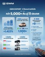 GWM (Thailand) ยกระดับมาตรฐานการส่งออกอย่างต่อเนื่อง เริ่มปักธงปี 2566 ด้วยการส่งออก GWM HAVAL H6 HEV และ GWM HAVAL Jolion HEV ไปยังเวียดนามและอินโดนีเซีย ก่อนขยายพอร์ตในปี 2567 ด้วยการเสริมทัพตระกูล GWM TANK อย่าง GWM TANK 300 HEV และ GWM TANK 500 HEV บุกตลาดอินโดนีเซีย ปี 2568 ขยายสู่ 9 ตลาดใหม่ในหลากหลายภูมิภาคทั่วโลก ได้แก่ มาเลเซีย ออสเตรเลีย ภูฏาน มอริเชียส บราซิล แอนติกา จาเมกา เซนต์ลูเซีย และบาร์เบโดส ทำให้ยอดส่งออกในปีนี้มากกว่า 3,000 คันแล้ว โดยนับตั้งแต่เริ่มสายการผลิตเพื่อส่งออกในปี 2566 โรงงานอัจฉริยะ GWM Smart Factory ที่จังหวัดระยองได้ส่งออกรถยนต์เกือบ 4,000 คัน (ตัวเลข ณ สิ้นเดือนสิงหาคม 2568) และคาดว่าจะเกิน 5,000 คันภายในสิ้นปี 2568
