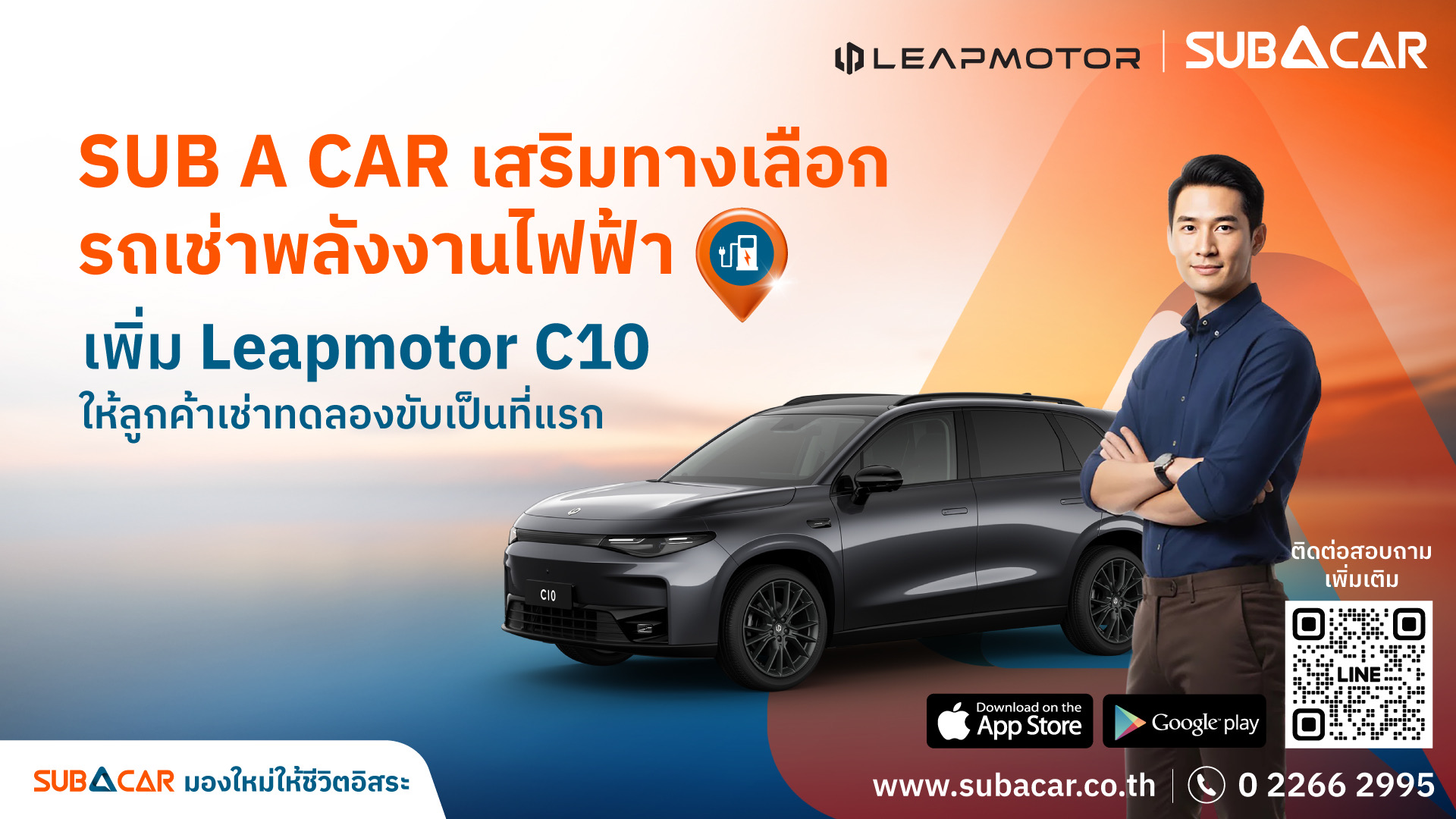 SUB A CAR ธุรกิจรถยนต์เช่ารายบุคคล ในเครือบริษัท อาคเนย์แคปปิตอล จำกัด หรือ SECAP ขยายทางเลือกรถยนต์เช่าอย่างต่อเนื่อง ตอบรับแนวโน้มที่สูงขึ้นในการเช่ารถเพื่อทดลองขับก่อนตัดสินใจซื้อจริง ซึ่งปี 2567 ที่ผ่านมา มีลูกค้าถึง 18% จองรถเพื่อวัตถุประสงค์ดังกล่าวโดยส่วนใหญ่เป็นกลุ่มรถยนต์ไฟฟ้าและรถยนต์ไฮบริด นอกจากนี้ยังมียอดลูกค้าแสดงความสนใจซื้อรถยนต์ผ่านแพลตฟอร์มมากกว่า 700 ครั้ง ทั้งนี้ เพื่อตอบสนองต่อความต้องการของลูกค้า SUB A CAR จึงได้จับมือกับ Leapmotor ค่ายรถยนต์ไฟฟ้าระดับโลก เปิดประสบการณ์ให้ลูกค้าเช่าขับรถยนต์ไฟฟ้า Leapmotor C10 ก่อนตัดสินใจซื้อได้ก่อนใคร พร้อมเพิ่มความสะดวกยิ่งขึ้นด้วยบริการส่งรถถึงหน้าบ้าน เพียงกดจองผ่านแอปพลิเคชัน SUB A CAR