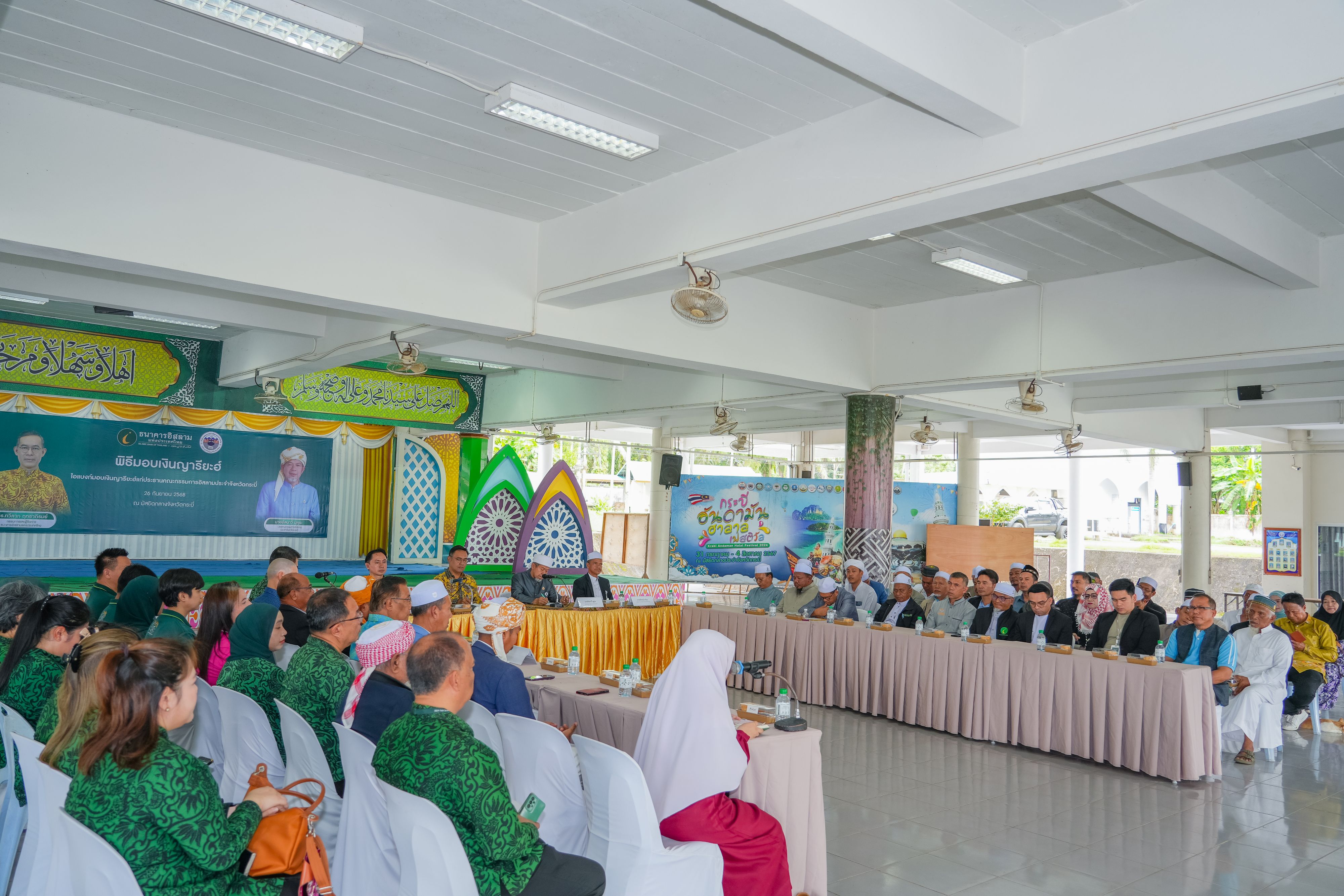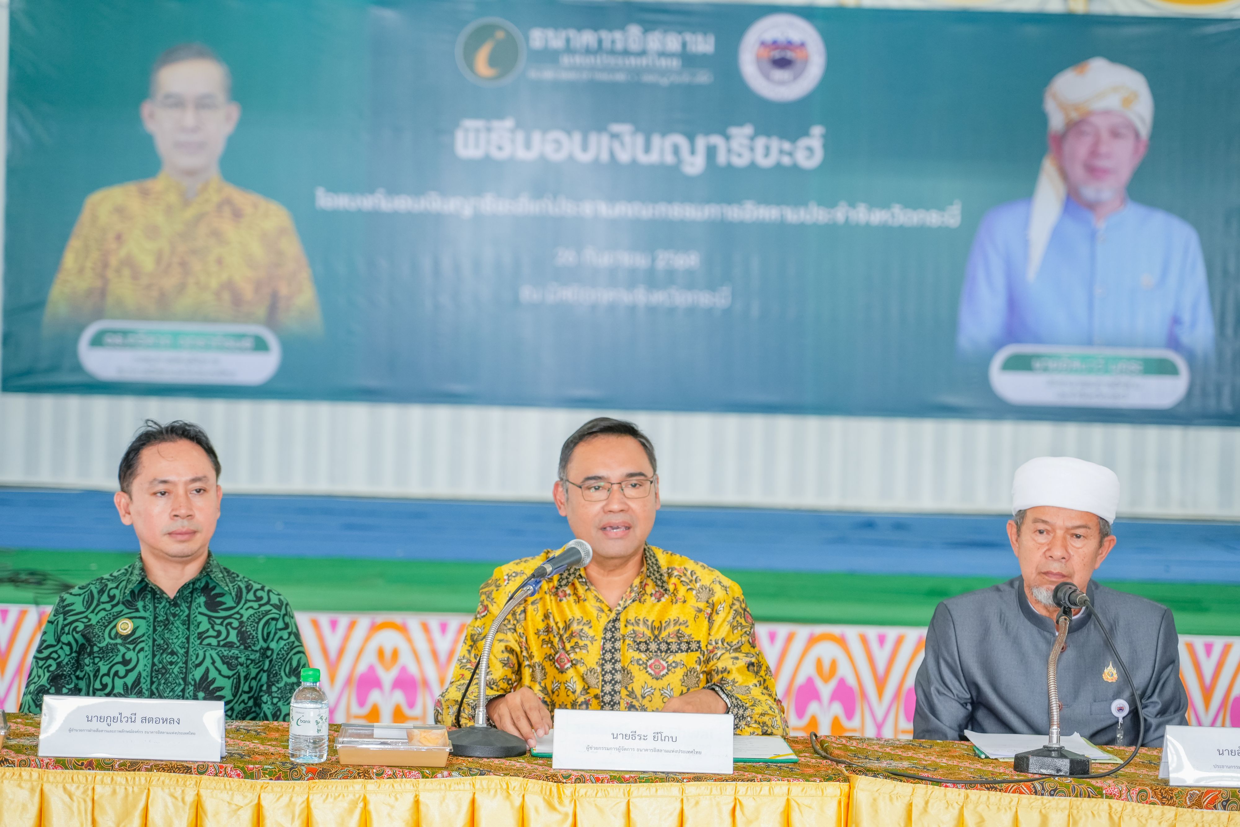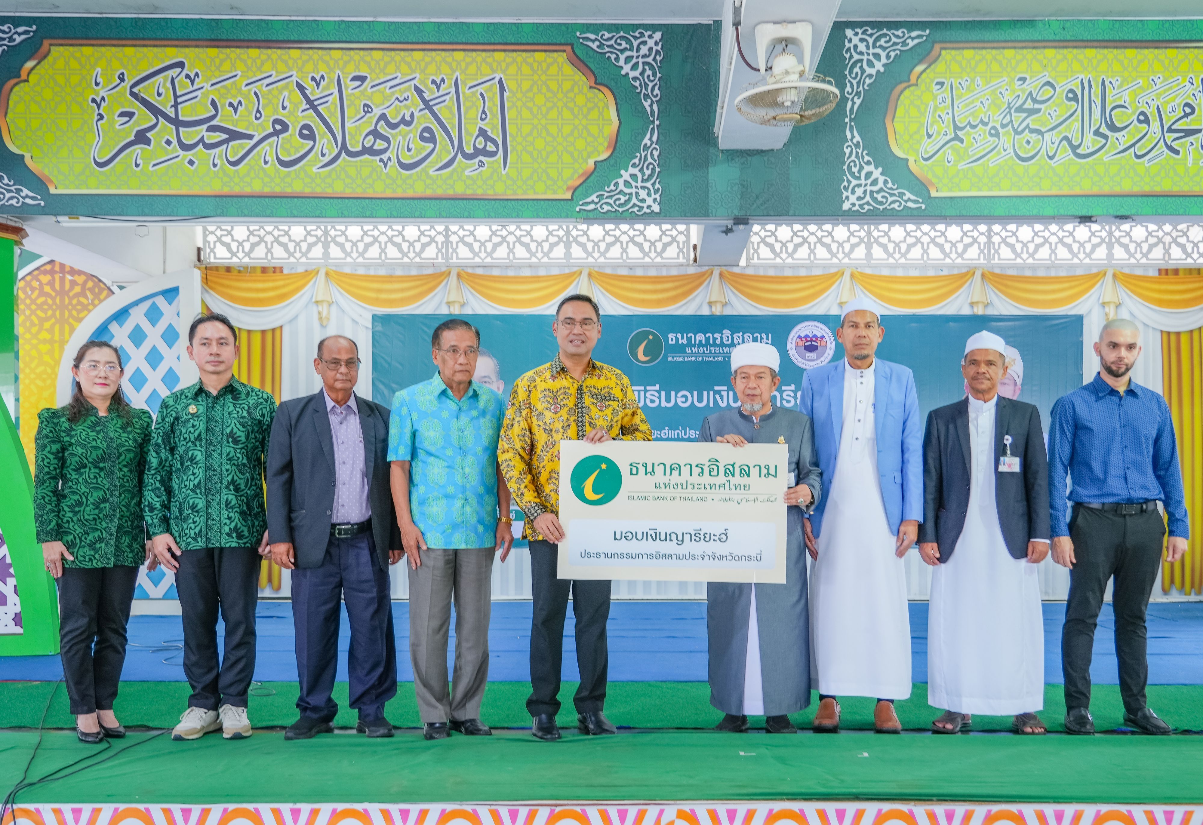 ธนาคารอิสลามแห่งประเทศไทย (ไอแบงก์) โดย นายธีระ ยีโกบ ผู้ช่วยกรรมการผู้จัดการธนาคาร จัด “พิธีส่งมอบเงินญารียะฮ์แก่ประธานกรรมการอิสลามประจำจังหวัดกระบี่” โดยมี นายอัสนาวี มุคุระ ประธานกรรมการอิสลามประจำจังหวัดกระบี่ และผู้ทรงคุณวุฒิจุฬาราชมนตรี ให้เกียรติรับมอบเงิน และส่งมอบให้กับมัสยิด 4 แห่ง และสำนักงานคณะกรรมการอิสลามประจำจังหวัดกระบี่ 1 แห่ง รวม 5 แห่ง พร้อมด้วย นายอดิสรณ์ เกกินะ เลขานุการคณะกรรมการอิสลามประจำจังหวัดกระบี่ นายสมศักดิ์ ขาวเล็ก กรรมการอิสลามประจำจังหวัดกระบี่ และอีหม่ามประจำมัสยิดกลางประจำจังหวัดกระบี่ ร่วมให้การต้อนรับและเป็นสักขีพยาน ซึ่งมีคณะกรรมการอิสลามประจำจังหวัด อีหม่าม คณะผู้นำศาสนา ผู้บริหารสำนักงานคณะกรรมการอิสลามประจำจังหวัดกระบี่ และคณะผู้บริหารธนาคารเข้าร่วมงาน ณ มัสยิดกลางประจำจังหวัดกระบี่ เมื่อช่วงเช้าวันที่ 26 กันยายน 2568
