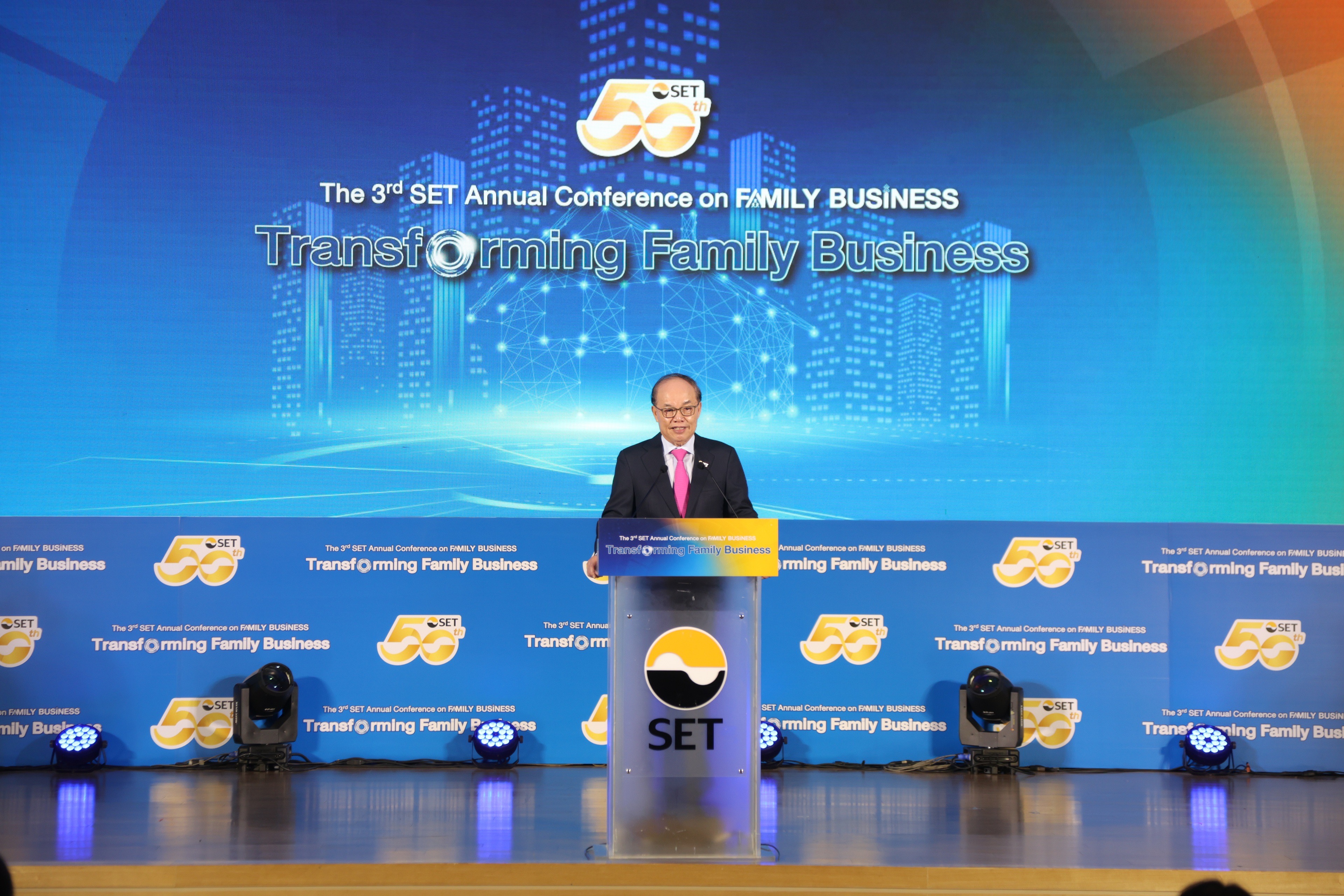 ตลาดหลักทรัพย์แห่งประเทศไทย ร่วมกับพันธมิตรจัดงาน The 3rd SET Annual Conference on Family Business ต่อเนื่องเป็นปีที่ 3 โดยปีนี้จัดขึ้นภายใต้แนวคิด Transforming Family Business มุ่งสร้างความแข็งแกร่งแก่ธุรกิจครอบครัวไทยพร้อมรับมือกับความท้าทายที่กำลังเผชิญ โดยมี ศาสตราจารย์พิเศษ กิติพงศ์ อุรพีพัฒนพงศ์ ประธานกรรมการ ตลาดหลักทรัพย์ฯ และวิทยากร Dr. Matt Allen ผู้เชี่ยวชาญด้านการพัฒนาทายาทธุรกิจจาก Kellogg School of Management ร่วมด้วยผู้บริหารทายาทเซ็นทรัลกรุ๊ปและไทยประกันชีวิต ถ่ายทอดความรู้และประสบการณ์ เมื่อ 26 ก.ย. 2568 มีผู้ประกอบการและผู้สนใจเข้าร่วมกว่า 350 ราย ทั้งนี้ สามารถศึกษาองค์ความรู้เกี่ยวกับธุรกิจครอบครัวของตลาดหลักทรัพย์ฯ ได้ที่ www.live-platforms.com/th/family-business