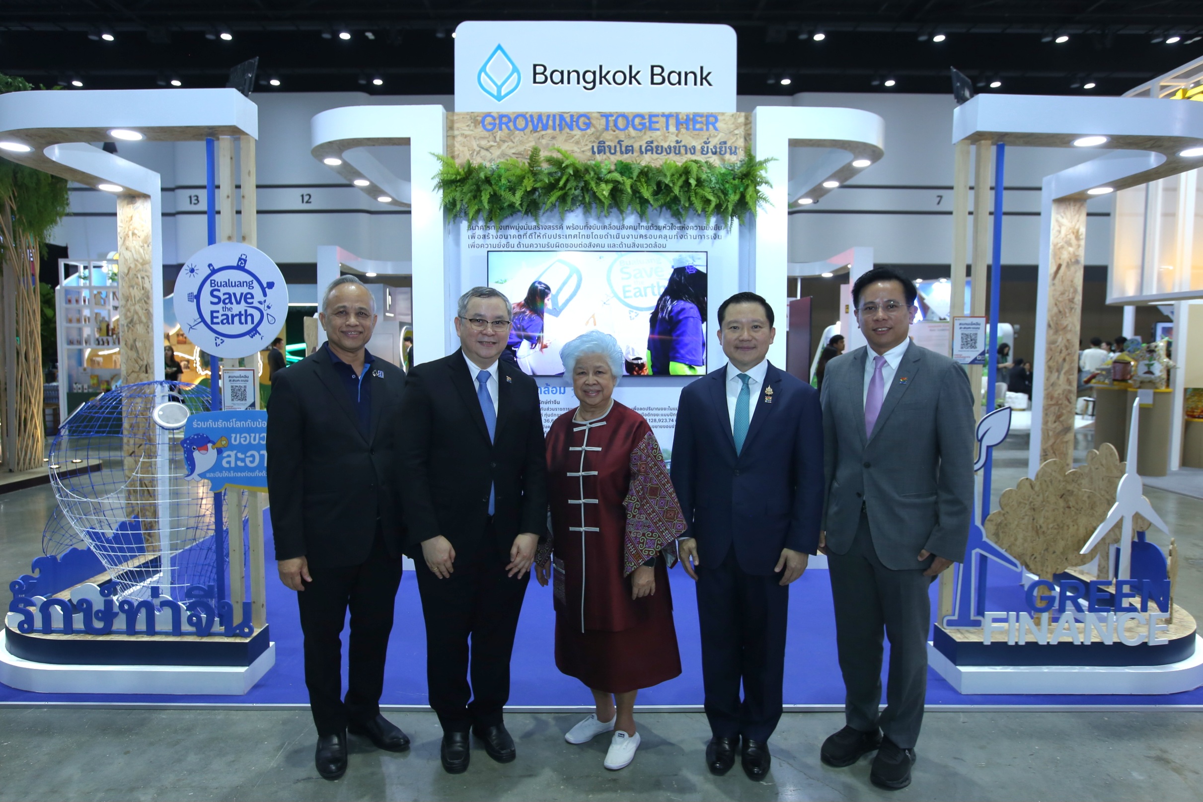 ธนาคารกรุงเทพ จำกัด (มหาชน) ร่วมแสดงพลังด้านความยั่งยืนในงาน Sustainability Expo 2025 ครั้งที่ 6 มหกรรมความยั่งยืนที่ใหญ่ที่สุดในเอเชีย ภายใต้แนวคิด “Growing Together” “เติบโต เคียงข้าง ยั่งยืน” ยกเคสความสำเร็จผ่าน 4 โครงการตัวอย่าง ด้านสิ่งแวดล้อม สังคม และการผนวกความรับผิดชอบต่อสังคมเข้ากับกระบวนการดำเนินธุรกิจหลัก (CSR in process) ตอกย้ำการเป็น ‘ธนาคารชั้นนำระดับภูมิภาค’ หนุนทุกภาคส่วนเติบโตไปด้วยกันอย่างยั่งยืน โดยโอกาสนี้ นายไชยฤทธิ์ อนุชิตวรวงศ์ รองผู้จัดการใหญ่ และ นายสุวิทย์ อินทรเฉลิม เจ้าหน้าที่บริหารระดับ Vice President ฝ่ายการประชาสัมพันธ์ ธนาคารกรุงเทพ จำกัด (มหาชน) ร่วมให้การต้อนรับ ท่านผู้หญิงบุตรี วีระไวทยะ ประธานมูลนิธิแม่ฟ้าหลวง หม่อมหลวงจิรพันธุ์ ทวีวงศ์ กรรมการและรองเลขาธิการ มูลนิธิชัยพัฒนา นายฐาปน สิริวัฒนภักดี กรรมการผู้อำนวยการใหญ่ บริษัท ไทยเบฟเวอเรจ จำกัด (มหาชน) ในฐานะประธานอำนวยการ Sustainability Expo 2025 และ นายแพทริค หอรัตนชัย ผู้อำนวยการ ผู้บริหารกิจการองค์กรประเทศไทย บริษัท ไทยเบฟเวอเรจ จำกัด (มหาชน) ขณะให้เกียรติเยี่ยมชมบูธธนาคาร