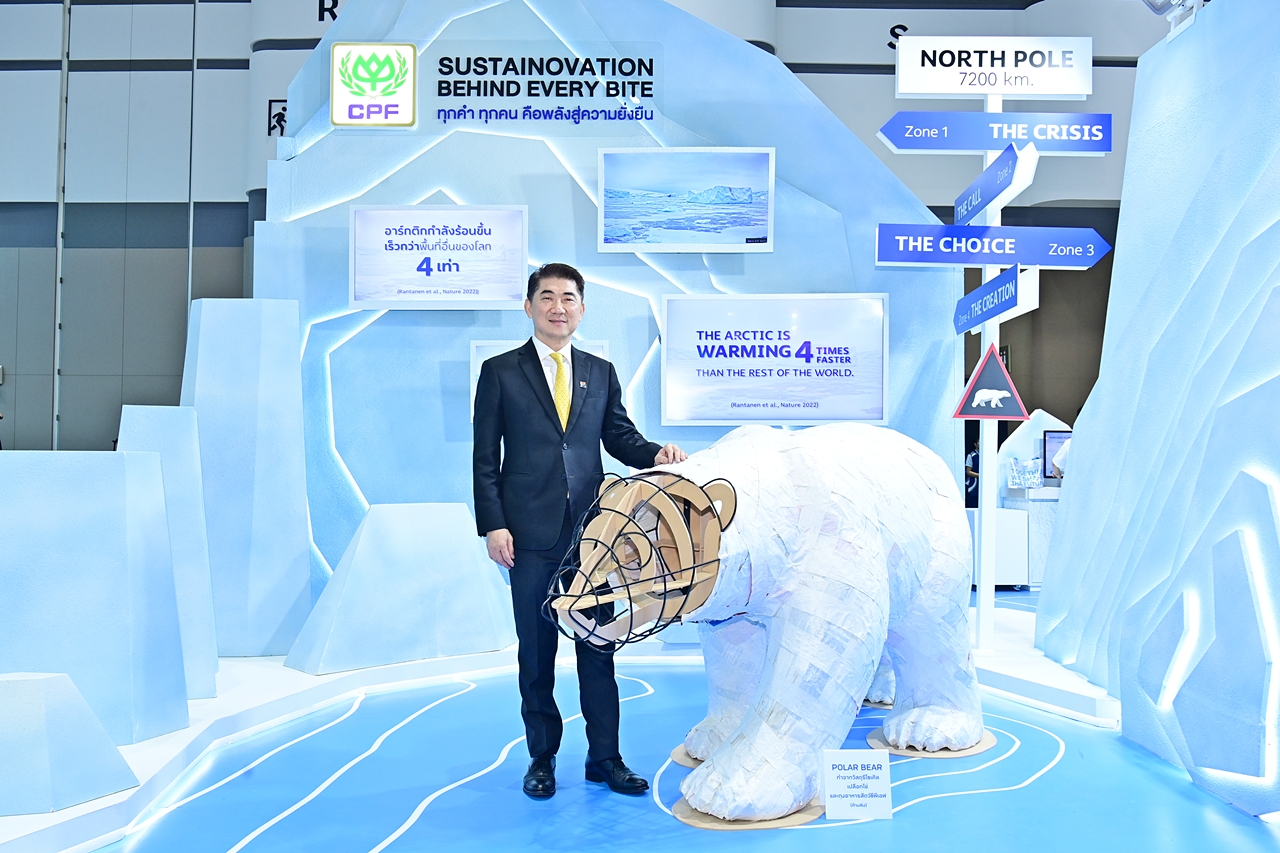 งาน SUSTAINABILITY EXPO 2025 (SX2025) มหกรรมความยั่งยืนที่ใหญ่ที่สุดในอาเซียน ปีนี้ บริษัท เจริญโภคภัณฑ์อาหาร จำกัด (มหาชน) หรือ ซีพีเอฟ นำเสนอแนวคิด “SUSTAINOVATION BEHIND EVERY BITE – ทุกคำ ทุกคน คือพลังสู่ความยั่งยืน” ผ่านการจัดแสดงบูธในรูปแบบ Interactive และจำลองบรรยากาศการเดินทางสู่ขั้วโลก ตอกย้ำความตระหนักต่อปัญหาสภาพภูมิอากาศที่เปลี่ยนแปลง และความมุ่งมั่นในพันธกิจสร้างความมั่นคงทางอาหาร เพื่อสนับสนุนให้ทุกคนมีสุขภาพและความเป็นอยู่ที่ดีขึ้น (Better Living) ผ่านการสร้างสรรค์อาหารที่ดีต่อกายและดีต่อใจ ด้วยนวัตกรรมแห่งความยั่งยืน (SUSTAINOVATION) ภายใต้วิสัยทัศน์ “ครัวของโลก” ที่นำเทคโนโลยีและนวัตกรรมมาประยุกต์ใช้ในทุกขั้นตอนตั้งแต่ Feed Farm Food โดยคำนึงถึงความยั่งยืนตลอดห่วงโซ่การผลิต
