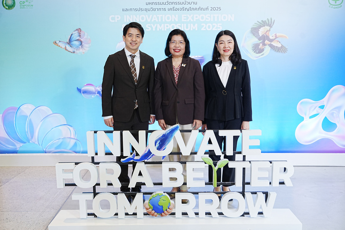 สำหรับงาน CP Innovation Exposition & Symposium 2025 เป็นเวทีรวมนวัตกรรมและแนวคิดสร้างสรรค์ที่ช่วยสร้างแรงบันดาลใจและสร้างองค์ความรู้ให้ธุรกิจขนาดกลางและขนาดเล็กสามารถนำองค์ความรู้ เทคโนโลยี และงานวิจัยที่ทันสมัยมาต่อยอดเชิงพาณิชย์ได้อย่างยั่งยืน โดยมีไฮไลท์สำคัญ คือ การพัฒนาผลิตภัณฑ์อาหารและการยืดอายุอาหาร (Food Shelf-life Extension) ด้วยเทคโนโลยีการแปรรูปสมัยใหม่และบรรจุภัณฑ์อัจฉริยะที่ลดการสูญเสียจากสินค้าหมดอายุ และตอบโจทย์ความต้องการด้านความปลอดภัยอาหารที่เป็นมาตรฐานสากล รวมถึงการใช้ Biotech Food เทคโนโลยีอาหารแห่งอนาคตที่ถูกพัฒนาโดยการใช้จุลินทรีย์เพื่อสร้างสารอาหาร และนวัตกรรมฟู้ดเทคเพื่อสุขภาพ เช่น โปรตีนทางเลือก (Alternative Protein) ที่ตอบโจทย์ผู้บริโภคยุคใหม่ นอกจากนี้ ยังมีการนำเสนอในมิติของการขนส่งหรือโลจิสติกส์ (Logistics) โดยนำ AI และระบบ Big Data มาช่วยเพิ่มประสิทธิภาพ ลดต้นทุน และรองรับการเติบโตในตลาด e-commerce ที่มีการแข่งขันสูง อาทิ การบริหารเส้นทางขนส่ง การจัดการคลังสินค้าแบบเรียลไทม์ และการคาดการณ์ความต้องการของผู้บริโภค