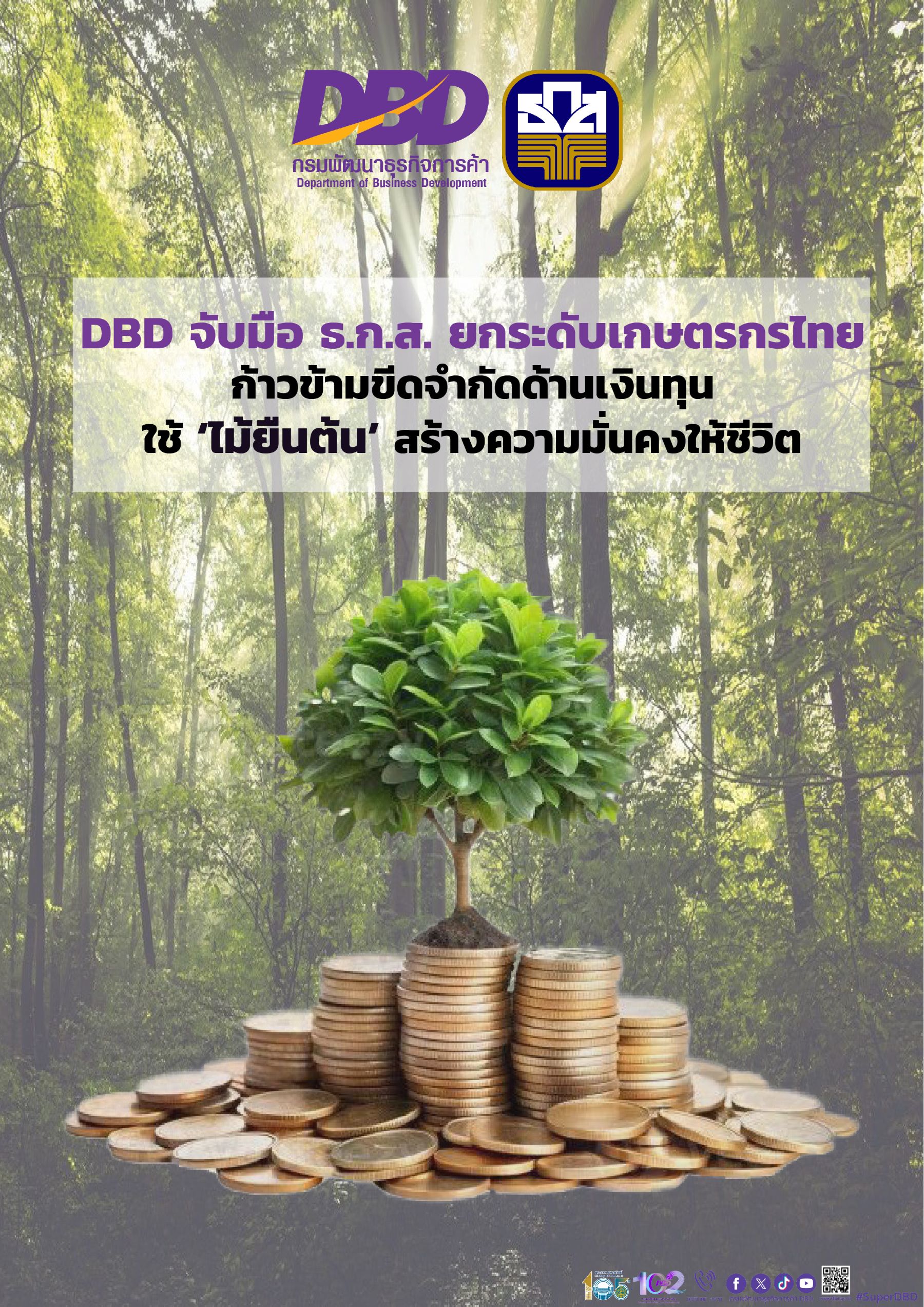 7 ปี กรมพัฒนาธุรกิจการค้า จับมือ ธ.ก.ส. ส่งเสริมปลูกไม้ยืนต้นทั่วประเทศ ยกระดับเกษตรกรไทย ก้าวข้ามขีดจำกัดด้านเงินทุน ใช้กลไกกฎหมายว่าด้วยหลักประกันทางธุรกิจชี้ทางสว่างนำไม้ยืนต้นเป็นหลักทรัพย์ค้ำประกันขอสินเชื่อจากสถาบันการเงิน ขอบคุณ ธ.ก.ส.ร่วมขับเคลื่อนกฎหมายฯ จนเห็นผลเป็นรูปธรรมชัดเจน และเป็นธนาคารแห่งแรกที่รับไม้ยืนต้นเป็นหลักประกันทางธุรกิจ จนถึงปัจจุบันเกษตรกรนำไม้ยืนต้นมาเป็นหลักประกันทางธุรกิจแล้ว 197,549 ต้น (316 สัญญา) วงเงินรวมกว่า 187 ล้านบาท แสดงให้เห็น ‘ต้นไม้เปลี่ยนเป็นเงิน’ ได้จริง