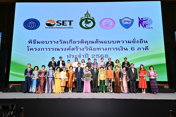 พร้อมกันนี้ ตลาดหลักทรัพย์ฯ ยังร่วมแสดงความยินดีกับ 17 องค์กรที่ได้รับรางวัลเกียรติคุณ “ต้นแบบความยั่งยืน ประจำปี 2568” ในฐานะองค์กรที่มุ่งมั่นดำเนินกิจกรรมอย่างต่อเนื่องไม่น้อยกว่า 3 ปี รางวัลนี้สะท้อนถึงการสร้างความมั่นคงทางการเงินแก่บุคลากรเเละชุมชนอย่างแท้จริง องค์กรที่สนใจความรู้ด้านการเงินของตลาดหลักทรัพย์ฯ ดูรายละเอียดเพิ่มเติมที่ www.set.or.th/happymoney