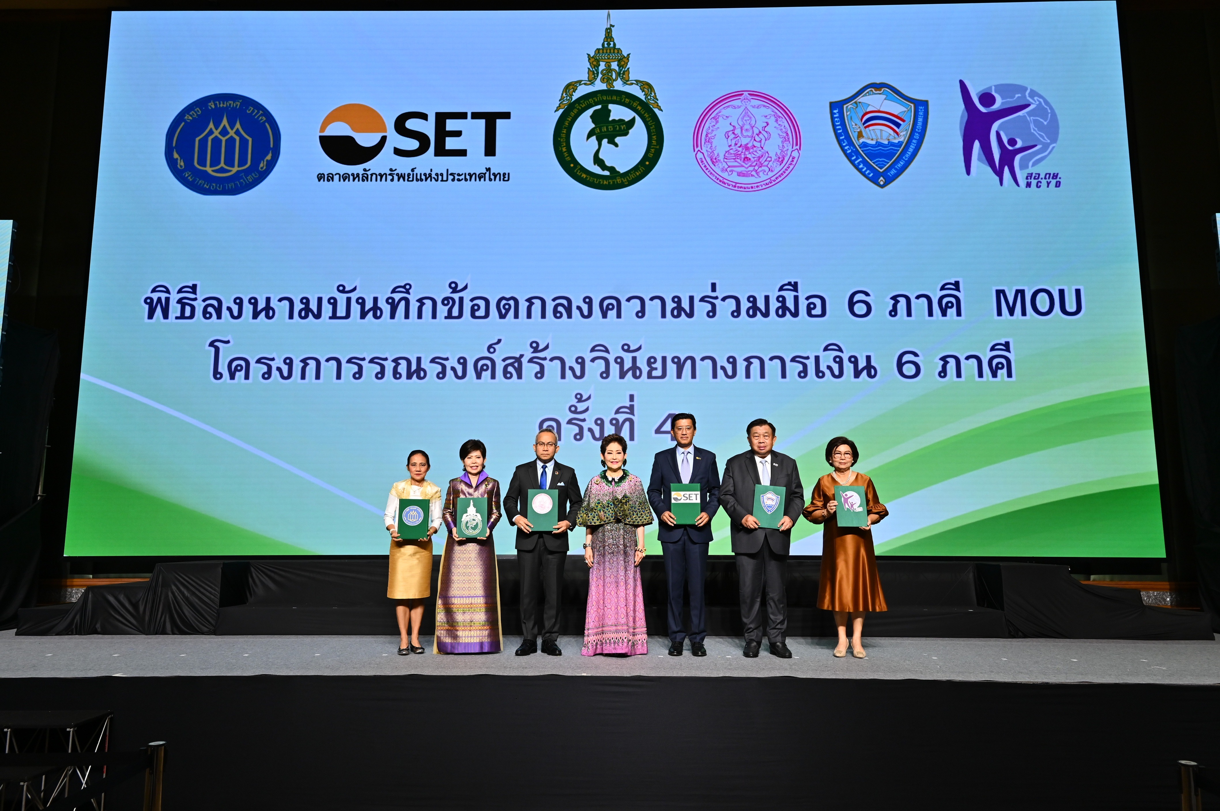 อัสสเดช คงสิริ กรรมการและผู้จัดการ ตลาดหลักทรัพย์แห่งประเทศไทย พร้อมด้วย คุณหญิงณัฐิกา วัธนเวคิน อังอุบลกุล ประธานสหพันธ์สมาคมสตรีนักธุรกิจและวิชาชีพแห่งประเทศไทยฯ และผู้บริหารอีก 5 ภาคีเครือข่าย ร่วมพิธีลงนาม MOU ความร่วมมือโครงการ “รณรงค์สร้างวินัยทางการเงิน” ระยะที่ 4 (ปี 2568-2571) เมื่อเร็วๆ นี้ โดยตลาดหลักทรัพย์ฯ มุ่งสนับสนุนองค์ความรู้ด้านการเงินขั้นพื้นฐานและการลงทุนอย่างถูกวิธี เพื่อส่งเสริมการสร้างวินัยทางการเงินอย่างต่อเนื่อง พร้อมขยายผลสู่องค์กรและชุมชนในวงกว้าง ถือเป็นอีกก้าวสำคัญที่ต่อยอดจากการดำเนินงานตลอด 9 ปีที่ผ่านมา สะท้อนถึงพลังของภาคีเครือข่ายในการยกระดับการทำงานร่วมกัน มุ่งสู่ผลลัพธ์ที่ยั่งยืนในอนาคต