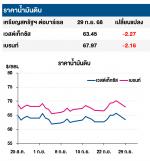 (-) ราคาน้ำมันดิบปรับตัวลดลง หลังกลุ่มโอเปก (OPEC+) จะมีการประชุมร่วมกันในวันอาทิตย์นี้ และมีแนวโน้มที่จะเพิ่มกำลังการผลิตเพิ่มเติมอย่างน้อย 137,000 บาร์เรลต่อวัน ในเดือน พ.ย. 68 เพื่อเพิ่มส่วนแบ่งการตลาด