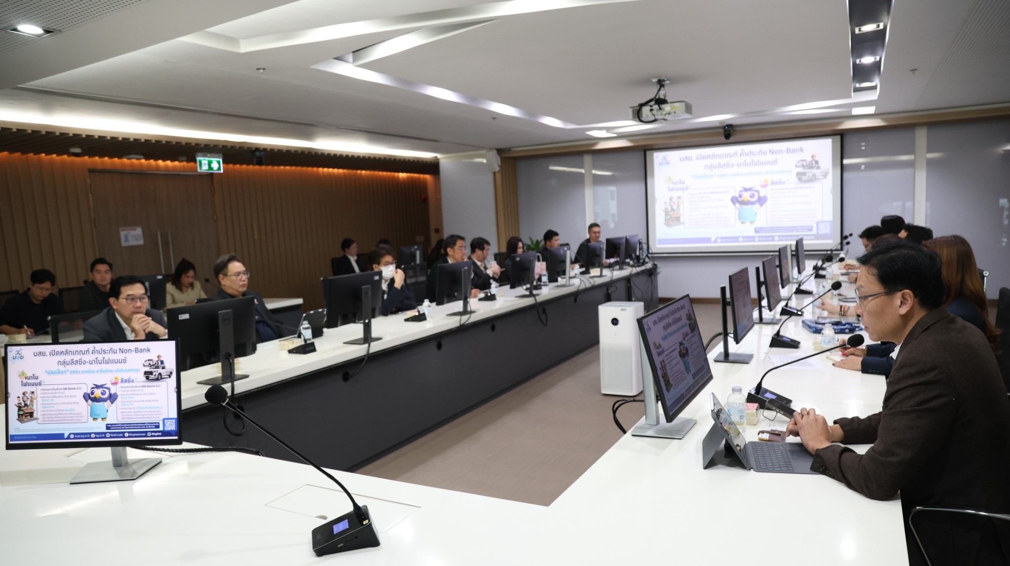 พร้อมกันนี้ เพื่อเตรียมพร้อมในการขยายบริการค้ำประกันสินเชื่อเช่าซื้อรถกระบะ “ลีสซิ่ง” ไปยังกลุ่ม Non-Bank ภายใต้ประกาศฉบับใหม่ได้อย่างเหมาะสม เมื่อวันที่ 26 กันยายน 2568 บสย. ได้จัดประชุมรับฟังข้อเสนอแนะจากกลุ่มผู้ให้บริการสินเชื่อเช่าซื้อ โดยผู้บริหารจากกลุ่มบริษัทลีสซิ่ง ที่เป็นสมาชิกสมาคมธุรกิจเช่าซื้อไทย นำโดย นายศรัณย์ ทองธรรมชาติ ประธานกรรมการสมาคมธุรกิจเช่าซื้อไทย ได้ร่วมหารือพร้อมกัน ซึ่งจากการตรวจสอบข้อมูลเบื้องต้น พบว่ามีผู้ให้บริการสินเชื่อเช่าซื้อ ที่เป็นไปตามคุณสมบัติในระยะแรกที่สามารถใช้การค้ำประกันสินเชื่อของ บสย. รวม 12 ราย โดยในจำนวนนี้ผู้ให้บริการที่มีผลิตภัณฑ์สินเชื่อเช่าซื้อรถกระบะเพื่อการพาณิชย์ สามารถใช้ บสย. ค้ำประกันผ่านมาตรการ “กระบะพี่ มีคลังค้ำ” ซึ่งพร้อมเปิดรับคำขอค้ำประกันกลุ่ม Non-Bank ตั้งแต่วันที่ 15 ตุลาคม 2568 โดยมาตรการดังกล่าวจะสิ้นสุดรับคำขอค้ำประกันภายในวันที่ 30 ธันวาคม 2568