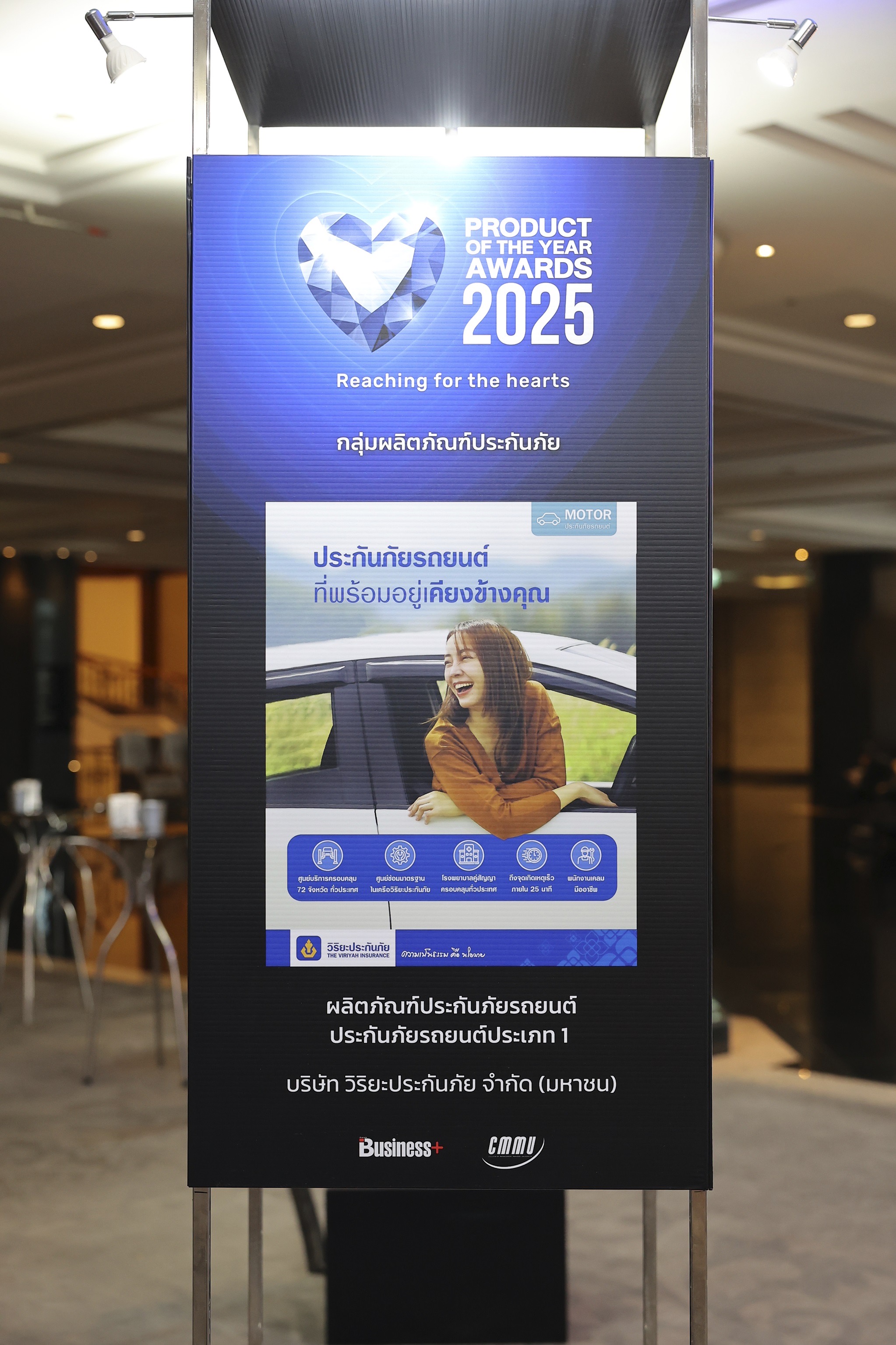 สำหรับ งาน “Business+ Product of the Year Awards 2025” จัดขึ้นภายใต้แนวคิด “Reaching for the hearts เข้าถึงใจผู้บริโภค” เพื่อมอบรางวัลแก่แบรนด์ธุรกิจไทย ที่สามารถตอบสนองความต้องการของผู้บริโภคได้อย่างเต็มประสิทธิภาพ โดยใช้กระบวนการพิจารณารางวัลที่มีความเข้มข้นและเป็นมาตรฐาน ภายใต้การสำรวจเชิงปริมาณและการประเมินเชิงคุณภาพโดยผู้ทรงคุณวุฒิ จากวิทยาลัยการจัดการ มหาวิทยาลัยมหิดล (CMMU) รางวัลดังกล่าว จึงถือเป็นอีกหนึ่งสัญลักษณ์แห่งความไว้วางใจของผู้บริโภคมีต่อวิริยะประกันภัย และสะท้อนถึงความมุ่งมั่นขององค์กรในการพัฒนาผลิตภัณฑ์ประกันภัยที่มีคุณภาพ เพื่อเคียงข้างดูแลความเสี่ยงภัยให้กับสังคมไทยอย่างยั่งยืน