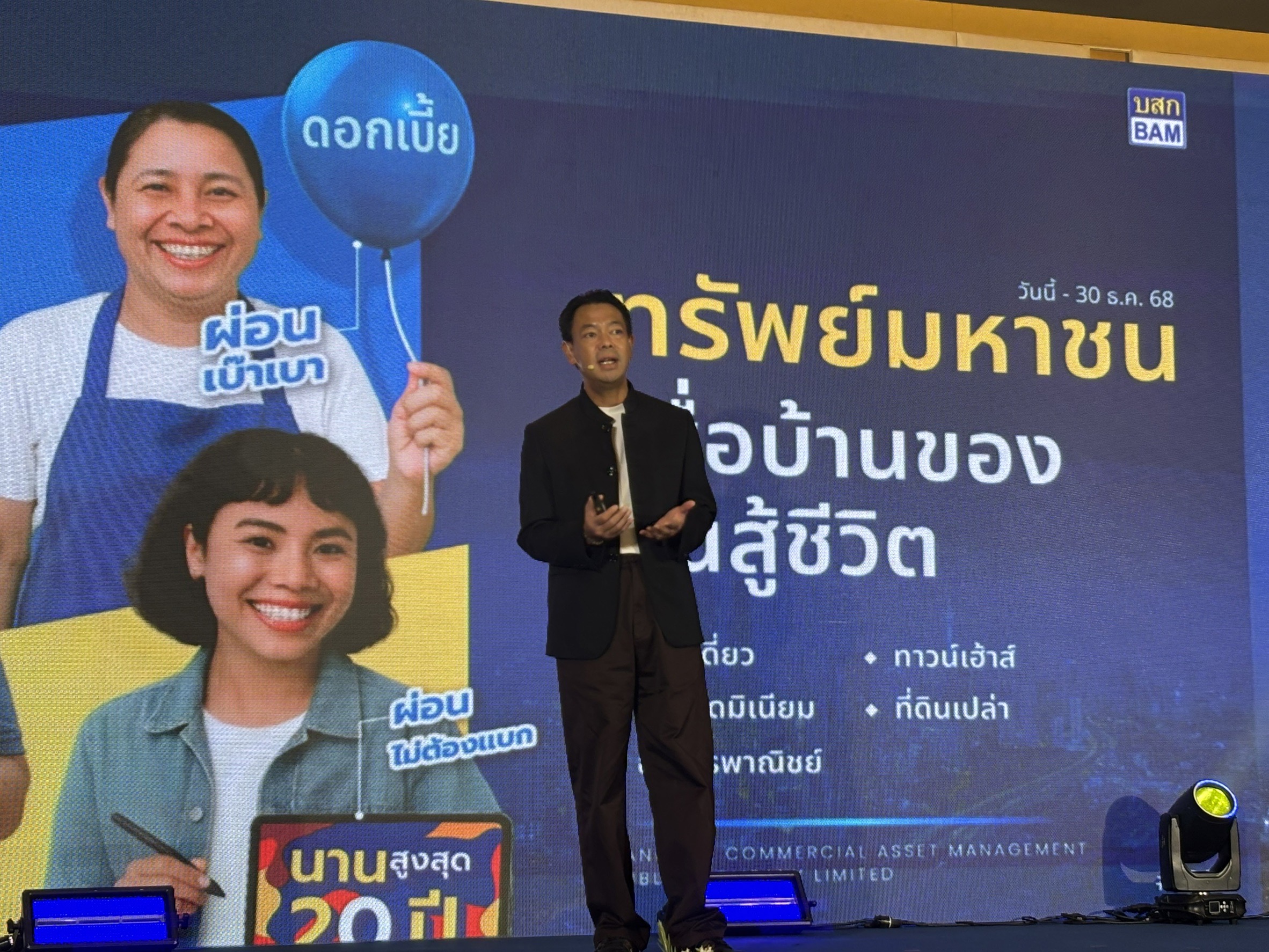 ดีลเด็ด! คนรายได้น้อยไม่มีเงินเดือนประจำก็ผ่อนบ้านได้ BAM เปิดตัวโครงการ “ทรัพย์มหาชน”เพื่อบ้านของคนสู้ชีวิต สร้างโอกาสใหม่ให้คนไทยเข้าถึง “บ้าน” อย่างแท้จริง ในราคาจับต้องได้ ผ่อนตรง กับ BAM แบบสบาย ๆ เริ่มต้นเพียง 500 บาท ต่อเดือนระยะเวลานาน 20 ปี อัตราดอกเบี้ยพิเศษปีแรก 0% ปิดยอดภายใน 3 ปี รับโปรโมชันฟรีค่าธรรมเนียมการโอน จัดเต็มขนมาให้เลือกทั้งบ้าน ทาวน์เฮ้าส์ คอนโดมิเนียม อาคารพาณิชย์ รวมถึงที่ดินทำเลดีทั่วประเทศ เริ่มแล้วตั้งแต่วันนี้ถึงสิ้นปี 2568 ตอกย้ำความมุ่งมั่น ต้องการยกระดับคุณภาพชีวิตความเป็นอยู่ของคนไทยให้ดีขึ้น