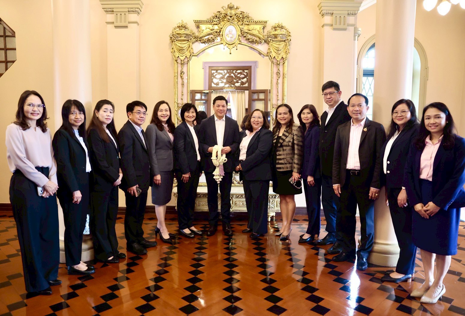 นางลภาวรรณ จันทร์กระจ่าง รองผู้อำนวยการธนาคารออมสิน รักษาการผู้อำนวยการธนาคารออมสิน เป็นตัวแทนธนาคารออมสิน นำคณะผู้บริหาร ร่วมแสดงความยินดีกับ นายวิทัย รัตนากร ผู้ว่าการธนาคารแห่งประเทศไทย ในโอกาสเข้ารับตำแหน่งอย่างเป็นทางการ ณ ธนาคารแห่งประเทศไทย เมื่อวันที่ 1 ตุลาคม 2568