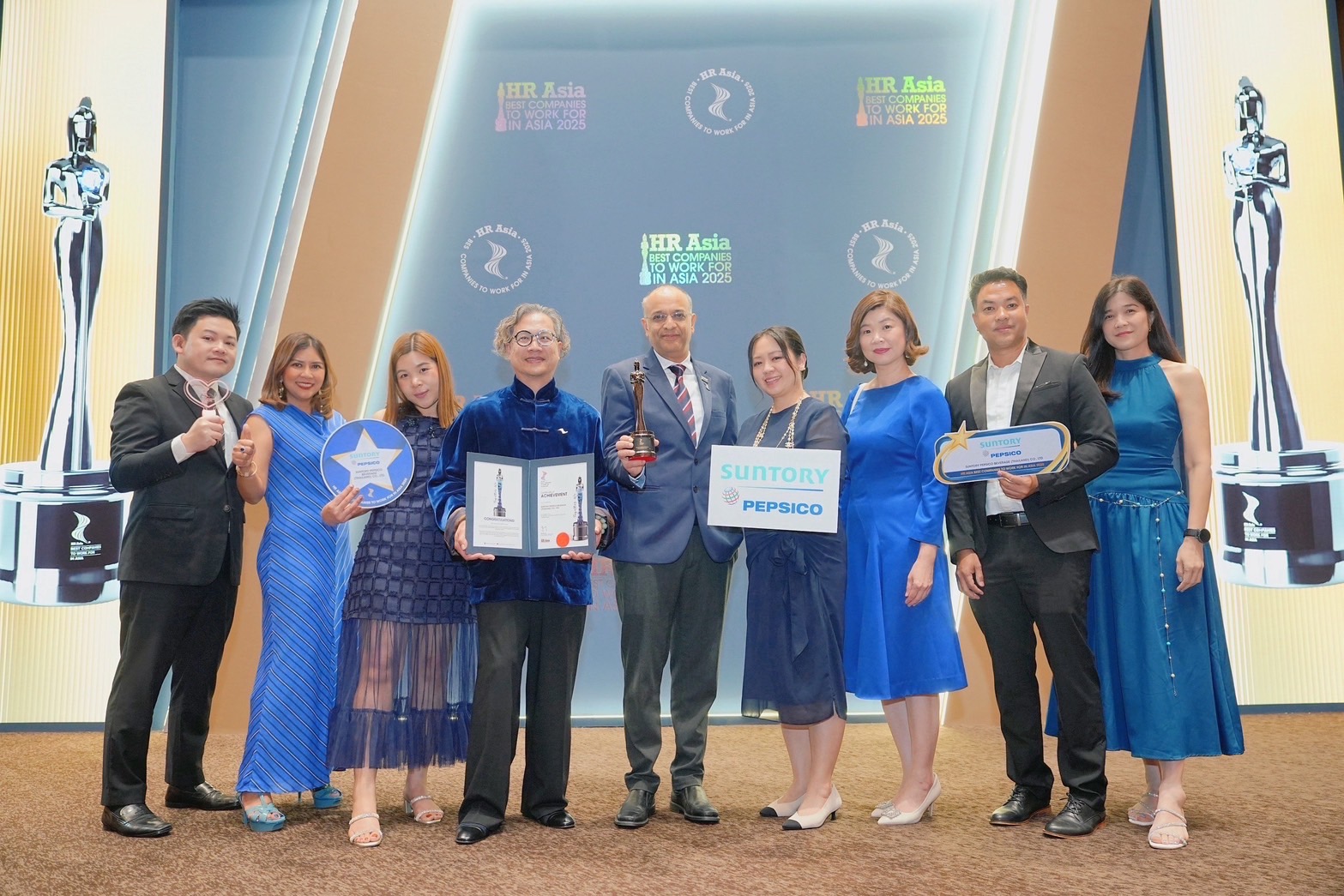 บริษัท ซันโทรี่ เป๊ปซี่โค เบเวอเรจ (ประเทศไทย) จำกัด ผู้ผลิตและจัดจำหน่ายเครื่องดื่มภายใต้แบรนด์สินค้าของซันโทรี่และเป๊ปซี่โคในประเทศไทย คว้ารางวัลองค์กรดีเด่นที่น่าทำงานมากที่สุดในเอเชียประจำปี 2568 (HR Asia Best Companies to Work for in Asia 2025) จากนิตยสาร HR Asia สื่อชั้นนำด้านการบริหารทรัพยากรบุคคลที่เป็นที่ยอมรับในภูมิภาคเอเชีย ซึ่งพิจารณามอบรางวัลให้กับองค์กรที่โดดเด่นด้านกลยุทธ์และการบริหารทรัพยากรบุคคลที่มีประสิทธิภาพ รวมถึงวัฒนธรรมองค์กรที่แข็งแกร่ง โดยมี นายทานุจ ชาดา ประธานเจ้าหน้าที่บริหาร และ นายยศยุต สหวัชรินทร์ รองประธานบริหารอาวุโส ฝ่ายทรัพยากรมนุษย์และบรรษัทสัมพันธ์ บริษัท ซันโทรี่ เป๊ปซี่โค เบเวอเรจ (ประเทศไทย) จำกัด เป็นตัวแทนบริษัทฯ รับรางวัลอันทรงเกียรตินี้