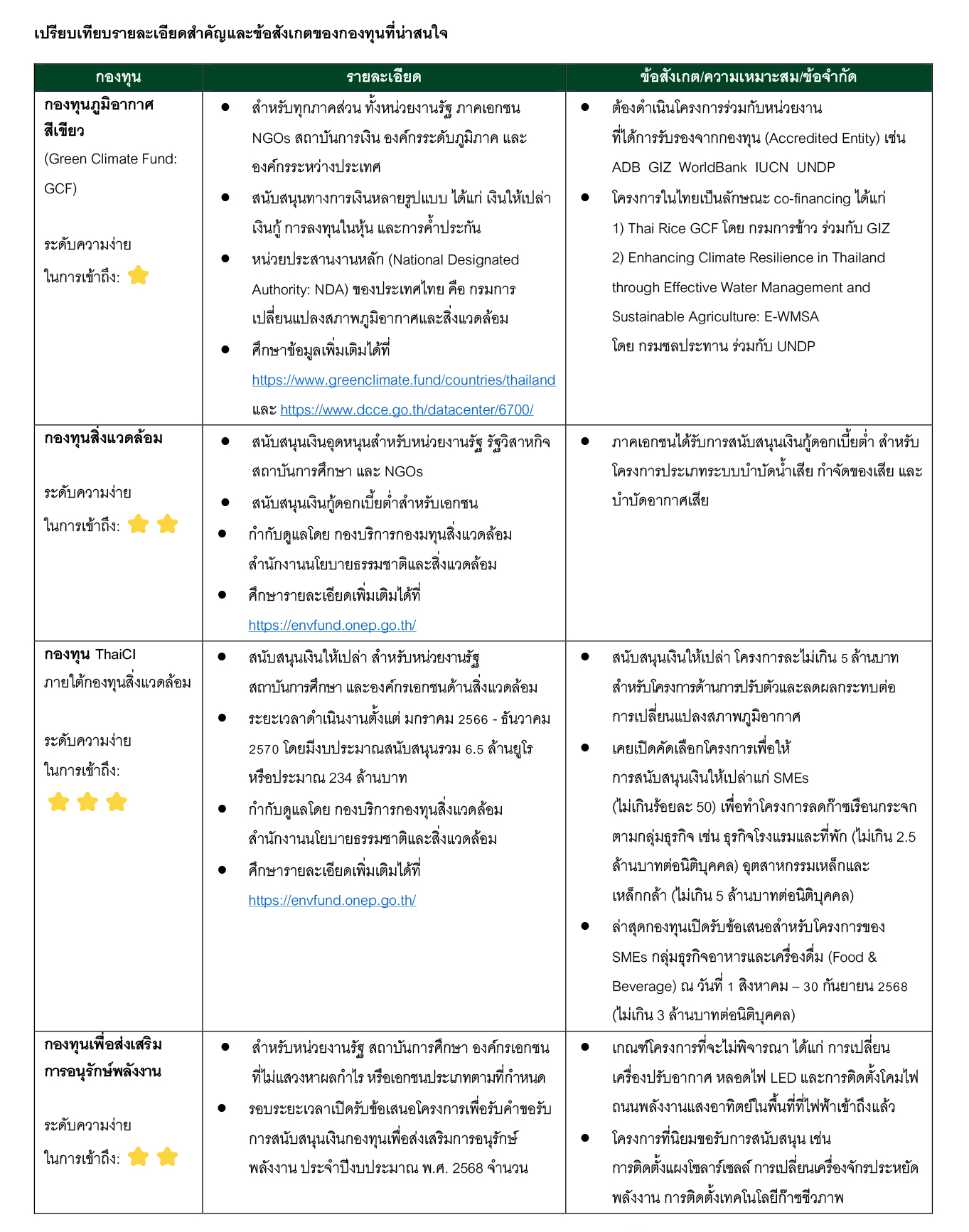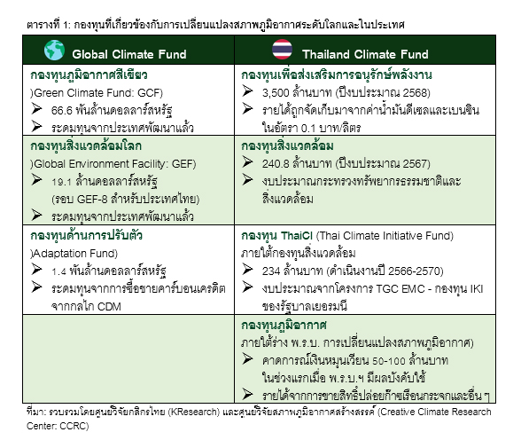 ตารางที่ 1: กองทุนที่เกี่ยวข้องกับการเปลี่ยนแปลงสภาพภูมิอากาศระดับโลกและในประเทศ