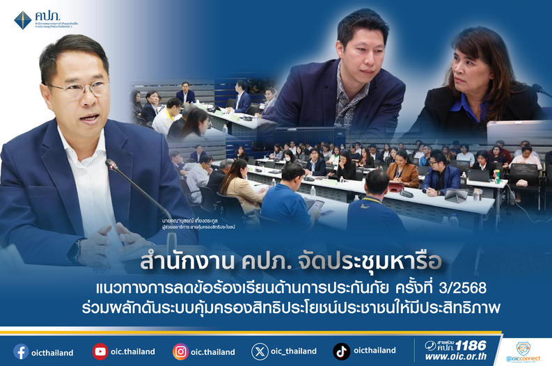สำนักงานคณะกรรมการกำกับและส่งเสริมการประกอบธุรกิจประกันภัย (สำนักงาน คปภ.) จัดการประชุมหารือแนวทางการคุ้มครองสิทธิประโยชน์ประชาชนด้านการประกันภัยร่วมกับภาคธุรกิจ ครั้งที่ 3/2568 ของสายคุ้มครองสิทธิประโยชน์ โดยในวันที่ 23 กันยายน 2568 เป็นการประชุมร่วมกับผู้แทนบริษัทประกันชีวิต มีนางณปภัช เดชธัญญนนท์ ผู้อำนวยการฝ่ายอาวุโสฝ่ายคุ้มครองสิทธิประโยชน์ และนายธัญญวัฒน์ ตั้งพงษาพันธ์ ผู้ทรงคุณวุฒิด้านกฎหมาย เป็นผู้ดำเนินการประชุม และในวันที่ 25 กันยายน 2568 เป็นการประชุมร่วมกับผู้แทนบริษัทประกันวินาศภัยทุกบริษัท พร้อมผู้แทนจากสมาคมประกันวินาศภัยไทย มีนายคณานุสรณ์ เที่ยงตระกูล ผู้ช่วยเลขาธิการ สายคุ้มครองสิทธิประโยชน์ เป็นผู้ดำเนินการประชุม พร้อมด้วยผู้บริหารและเจ้าหน้าที่สายงานที่เกี่ยวข้อง โดยมีวัตถุประสงค์เพื่อหารือแนวทางยกระดับมาตรฐานการให้บริการของบริษัทประกันชีวิตและ บริษัทประกันวินาศภัยต่อผู้เอาประกันภัยและผู้มีสิทธิเรียกร้องตามสัญญาประกันภัย มุ่งเน้นการลดข้อร้องเรียนและข้อพิพาท ตลอดจนเสริมสร้างความโปร่งใสและความเป็นธรรมในกระบวนการคุ้มครองสิทธิประโยชน์ของประชาชนที่ประชุมได้ติดตามความคืบหน้าในประเด็นสำคัญ ได้แก่ การปฏิบัติตามกรอบมาตรฐานระยะเวลาสำหรับการให้บริการ (Service Level Agreement : SLA) การประสานงานผ่านระบบทางด่วนประกันภัย (ISC) และการพิจารณาข้อร้องเรียนในชั้นพนักงานเจ้าหน้าที่ ตลอดจนปัญหาการไกล่เกลี่ยข้อพิพาทโดยผู้ชำนาญการ และการระงับข้อพิพาทด้วยวิธีอนุญาโตตุลาการ อันเป็นกลไกสำคัญในการเสริมสร้างความเชื่อมั่นและความโปร่งใสแก่ผู้เอาประกันภัย และกำชับให้เร่งกระบวนการชดใช้ค่าสินไหมทดแทนความเสียหายอันเกิดจากเหตุแผ่นดินไหวให้รวดเร็วภายในระยะเวลาที่กำหนด