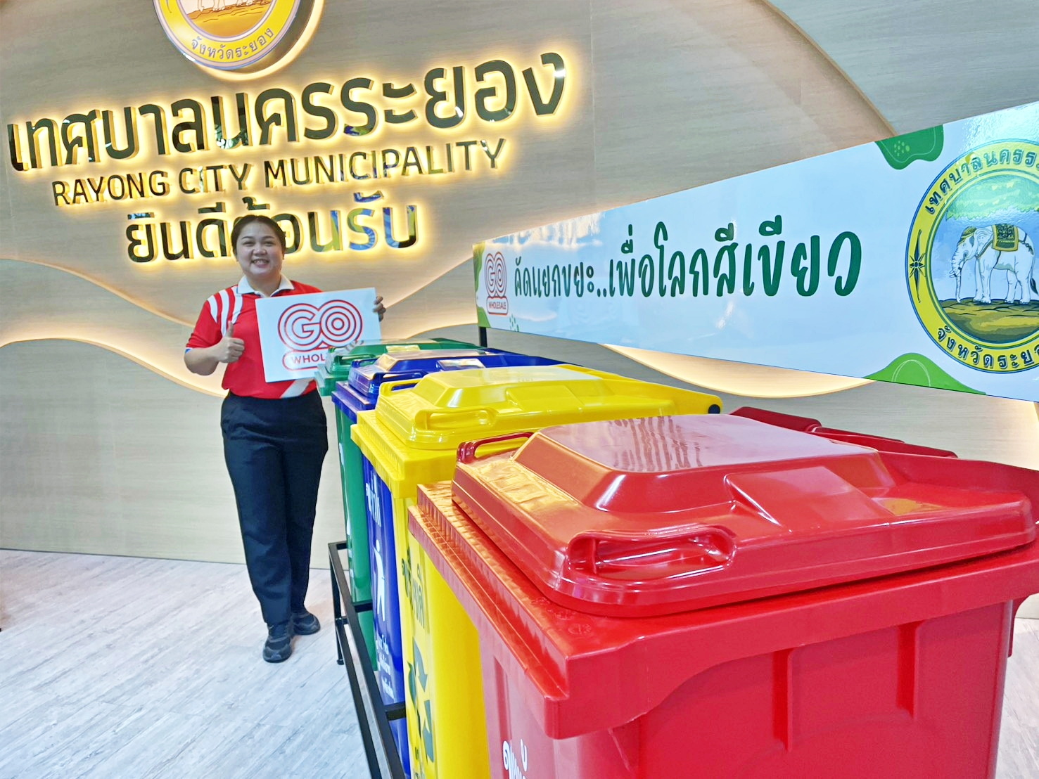 โก โฮลเซลล์ (GO WHOLESALE) ศูนย์ค้าส่งวัตถุดิบอาหาร ที่มีความสดใหม่ตลอดเวลาเพื่อผู้ประกอบการ ภายใต้การดำเนินงานของบริษัท เซ็นทรัล ฟู้ด โฮลเซลล์ จำกัด ในเครือเซ็นทรัล รีเทล เดินหน้านโยบายด้านสิ่งแวดล้อมอย่างต่อเนื่อง ล่าสุด นางสาวณัฏฐ์ธยาน์ เรืออาจ ผู้จัดการทั่วไป โก โฮลเซลล์ สาขาระยอง พร้อมพนักงาน นำถังคัดแยกขยะจำนวน 10 ชุด ภายใต้โครงการ “โก โฮลเซลล์ คัดแยกขยะ เพื่อโลกสีเขียว” มอบให้แก่เทศบาลนครระยอง โดยมี นายธันยวัฒน์ ชโลทร รองนายกเทศมนตรีเทศบาลนครระยอง ให้เกียรติเป็นผู้รับมอบ โดยจะมีการนำชุดเซ็ตถังคัดแยกขยะไปจัดวางตามจุดต่างๆ อาทิ เทศบาลนครระยอง คลินิกชุมชนอบอุ่น ศูนย์พัฒนาเด็กเล็กวัดป่าประดู่ และโรงเรียนสังกัดเทศบาลอีก 5 แห่ง เพื่อรณรงค์การคัดแยกขยะตั้งแต่ต้นทางให้ถูกต้อง ผ่านถังคัดแยก 4 สี 4 ประเภท ได้แก่ ถังขยะย่อยสลาย(สีเขียว) ถังขยะทั่วไป(สีน้ำเงิน) ถังขยะรีไซเคิล(สีเหลือง) และถังขยะอันตราย(สีแดง) สร้างความตระหนักด้านสิ่งแวดล้อม ลดปริมาณของเสียสู่หลุมฝังกลบ ลดปริมาณขยะในทะเล และช่วยบรรเทาปัญหาสำคัญของจังหวัดที่มีประชากรอาศัยอยู่เป็นจำนวนมาก ตั้งอยู่ในเขตพัฒนาพิเศษภาคตะวันออก(EEC) อีกทั้งยังเป็นเมืองท่องเที่ยวชื่อดังอีกด้วย พร้อมกันนั้น ยังได้มอบถุงยังชีพให้แก่ผู้ประสบความเดือดร้อนจากอัคคีภัย จำนวน 7 ครอบครัว