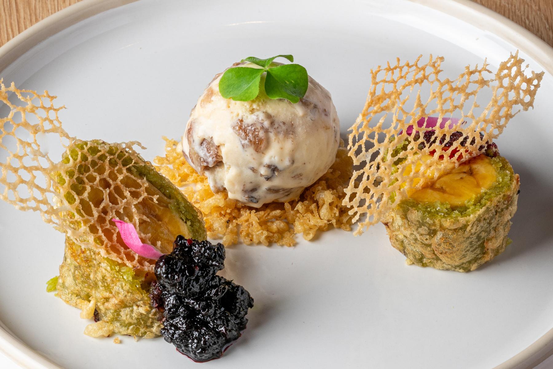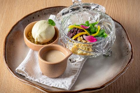 เมนูใหม่นี้ ยังนำเสนอขนมโบราณในความทรงจำอย่าง ขนมสี่ถ้วย ขนมมงคลที่ทำขึ้นเฉพาะในพิธีแต่งงานเพื่ออวยพรให้บ่าวสาวรักกันยืนยาว ข้าวเม่าไอศกรีมกล้วยไข่ ใช้ข้าวอ่อนที่คั่วจนหอม ใส่ไส้ด้วยกล้วยไข่ ทอดจนกรอบนอกนุ่มใน ทานคู่กับ ‘ไอติมกล้วยตาก’ ของดีขึ้นชื่อจากโครงการเกษตรอินทรีย์สนามบินสุโขทัย และขนมโคใส่ไส้ไอศกรีม สอดไส้ไอศกรีมมะม่วงมหาชนกจากโครงการเกษตรอินทรีย์สนามบินสุโขทัยเพิ่มความสดชื่นหอมหวาน