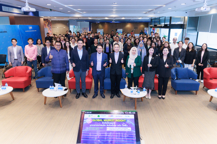 นายชลัช รัตนบุญนิธิ กรรมการผู้จัดการ ธนาคารเพื่อการส่งออกและนําเข้าแห่งประเทศไทย (EXIM BANK) และนางนุจรี ภักดีเจริญ ผู้ช่วยกรรมการผู้จัดการ ธนาคารอิสลามแห่งประเทศไทย (ไอแบงก์) ร่วมเปิดงานสัมมนา “Global Market Insight: อินไซต์กลยุทธ์บุกตลาดมาเลเซีย อินโดนีเซีย ฉบับ SMEs” จัดโดย EXIM BANK ร่วมกับหน่วยงานพันธมิตร โดยมีนายวรวรรณ วรรณวิล ผู้อำนวยการสำนักงานส่งเสริมการค้าในต่างประเทศ ณ กรุงกัวลาลัมเปอร์ นายมารุต เมฆลอย นายกสมาคมการค้านักธุรกิจไทยมุสลิม ดร.เอกชัย ตั้งรัตนาวลี กรรมการผู้บริหาร บริษัท ซีพี ซีดดิ้ง โซเชียลอิมแพคท์ จำกัด และ ดร.นรา อิลาซาน กรรมการผู้จัดการ บริษัท วี พลัส เอ็กซ์เพิร์ท จำกัด ผู้เชี่ยวชาญในตลาดมาเลเซียและตลาดอินโดนีเซีย ร่วมเป็นวิทยากรแลกเปลี่ยนข้อมูลทิศทางการค้า การลงทุน การวางกลยุทธ์บุกตลาดมาเลเซียอย่างยั่งยืน การบริหารการขนส่งระหว่างประเทศ รวมถึงถอดบทเรียนจากประสบการณ์จริงของผู้ประกอบการไทยที่ประสบความสำเร็จ เพื่อเตรียมความพร้อมให้ผู้ประกอบการ SMEs ไทยรุกตลาดฮาลาล อาทิ มาเลเซียและตลาดอินโดนีเซีย อย่างมั่นใจ โดยไอแบงก์ ให้ความรู้เรื่องการเข้าถึงแหล่งเงินทุนสำหรับ SMEs และ EXIM BANK ให้คำปรึกษาเรื่องเครื่องมือบริหารความเสี่ยงทางการค้าระหว่างประเทศ ณ EXIM BANK สำนักงานใหญ่ เมื่อวันที่ 7 ตุลาคม 2568