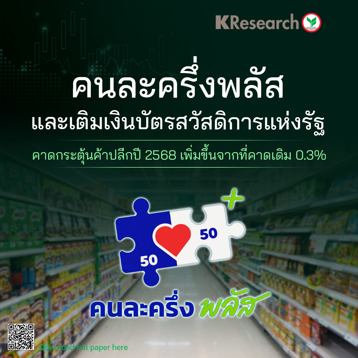 · มาตรการคนละครึ่งพลัส & เติมเงินบัตรสวัสดิการแห่งรัฐ อาจหนุนยอดขายค้าปลีกปี 2568 เพิ่มขึ้นอีก 0.3% เป็นโต 3.1% จากเดิมที่คาดว่าจะโต 2.8%