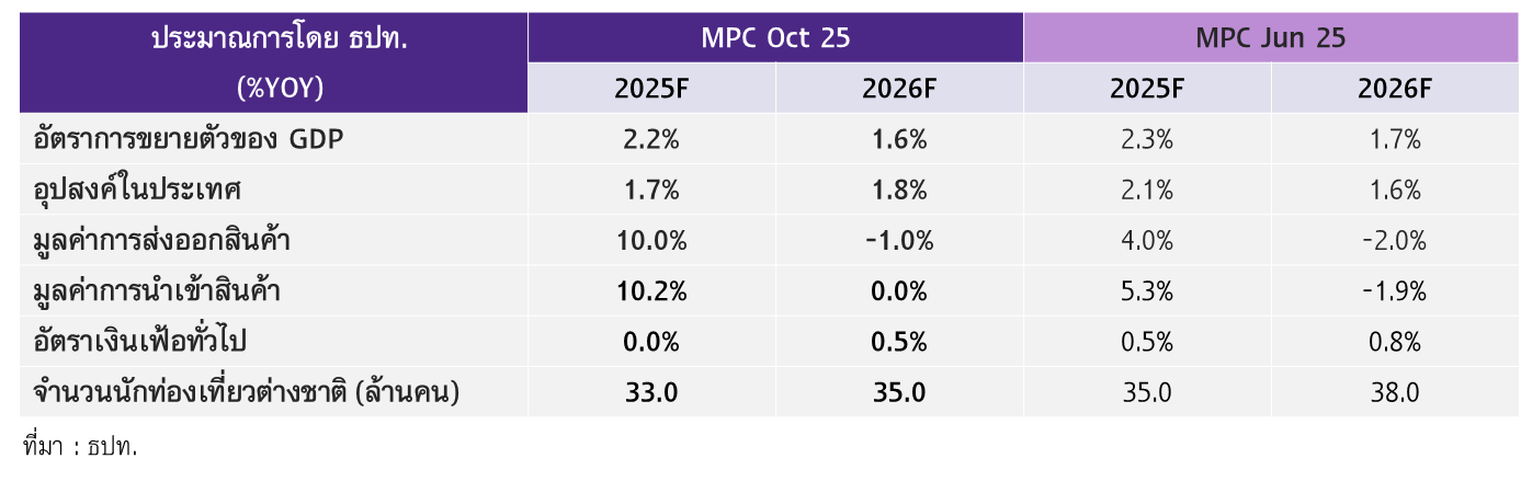 รูปที่ 1 : แนวโน้มเศรษฐกิจไทยปี 2025 – 2026 ของ ธปท. (ณ ต.ค. 2025)