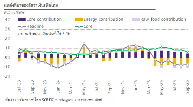 • กนง. มองว่าอัตราเงินเฟ้อทั่วไปจะยังไม่เข้าสู่กรอบเป้าหมายในปีหน้า โดยประเมินว่าจะกลับเข้าสู่ขอบล่างของกรอบเป้าหมายที่ 1% ในช่วงต้นปี 2027 ตามราคาน้ำมันดิบโลกที่ประเมินว่าจะกลับมาทรงตัวได้หลังจากปรับลดลงอย่างต่อเนื่อง