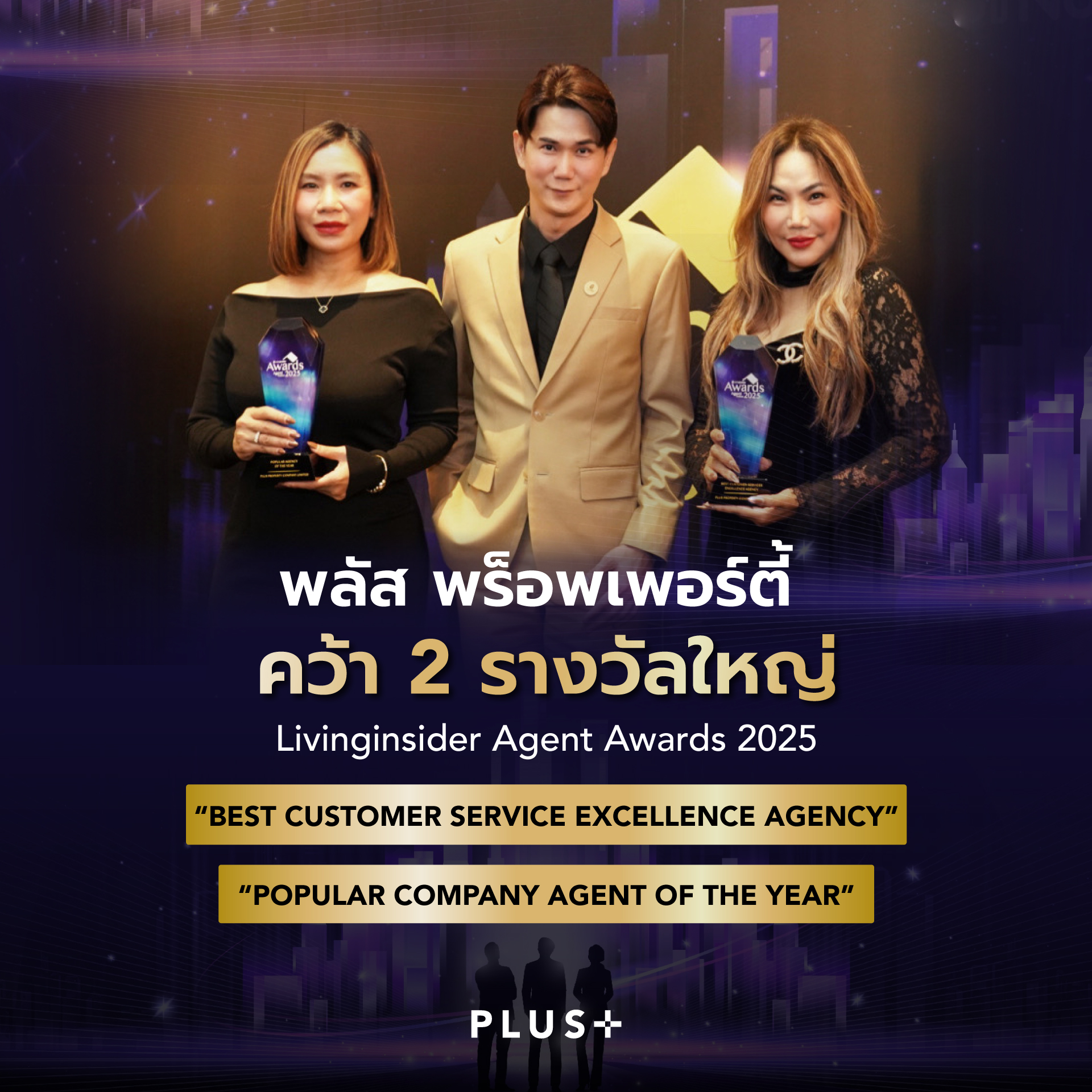 พลัส พร็อพเพอร์ตี้ บริษัทชั้นนำด้านบริหารจัดการอสังหาริมทรัพย์ครบวงจร ประกาศความสำเร็จอีกครั้ง! หลังคว้า 2 รางวัลใหญ่จากงาน Livinginsider Thailand Agent Awards 2025 เวทีที่ยกย่องเอเจนท์ ตัวแทนซื้อ-ขาย-เช่าอสังหาฯ และบริษัทนายหน้าที่มีผลงานโดดเด่นแห่งปี สะท้อนถึงมาตรฐานการทำงานที่เป็นมืออาชีพ และความเชื่อมั่นจากลูกค้าที่มีต่อองค์กรมาอย่างต่อเนื่อง