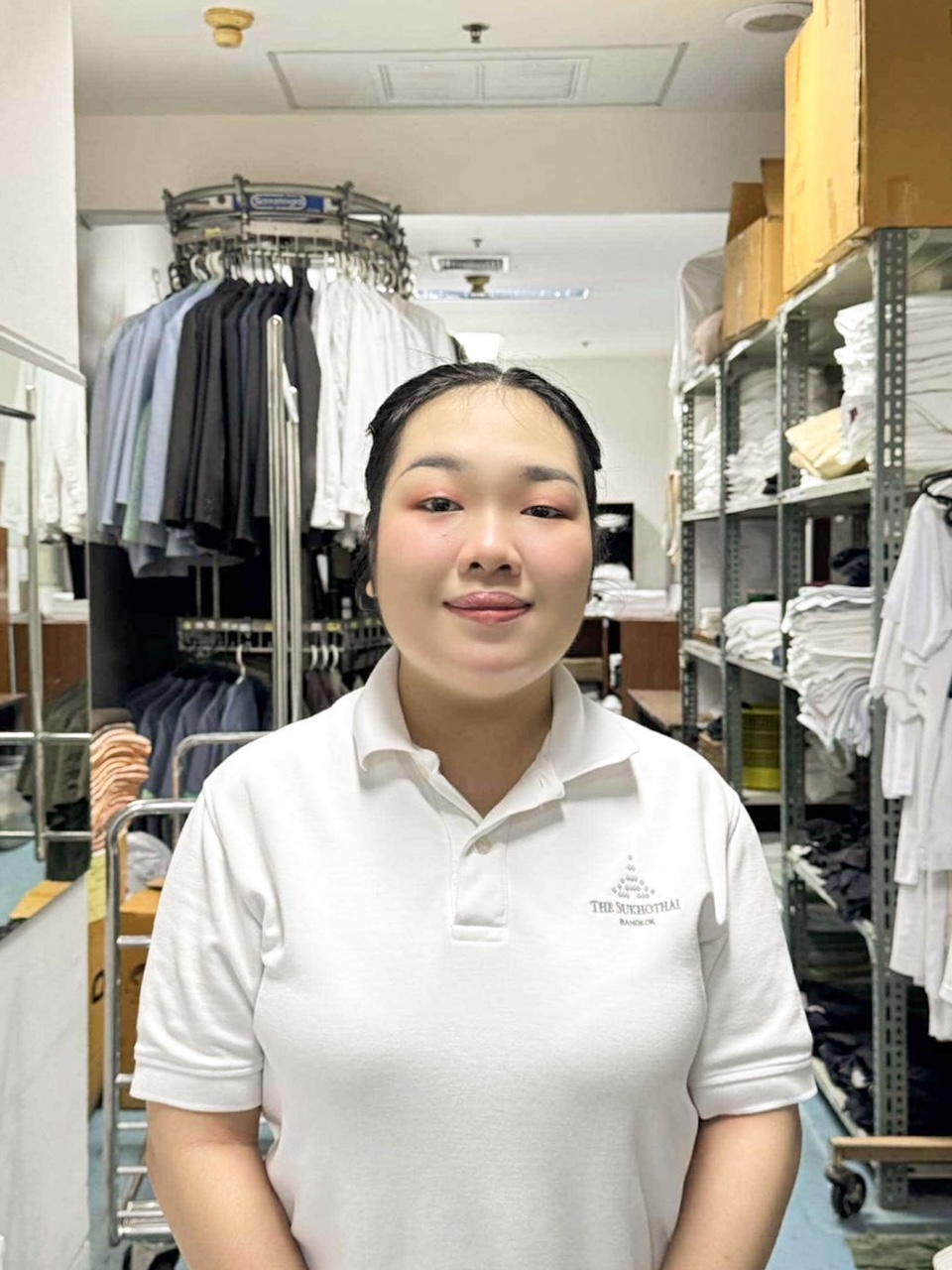 เนย ทำงานในแผนกแม่บ้าน ดูแลเรื่องลินิน ยูนิฟอร์ม ตั้งแต่วัดตัวไปจนถึงซ่อมแซมชุดยูนิฟอร์มของพนักงานที่ โรงแรมสุโขทัย "รู้สึกดีที่ได้เป็นตัวเองได้มากกว่าเดิม" เธอเล่า "ตอนนี้ส่งเงินให้แม่ทุกเดือนเลยค่ะ แม่บอกว่าไม่ต้องกังวลเรื่องเงินแล้ว หนูเองก็เก็บเงินได้ด้วย" เธอพูดต่อ น้ำเสียงมุ่งมั่น "ความฝันของหนูคืออยากเก็บเงินสร้างบ้านให้เสร็จตามความตั้งใจของแม่ อยากให้แม่ได้มีบ้านเป็นของเราเอง"