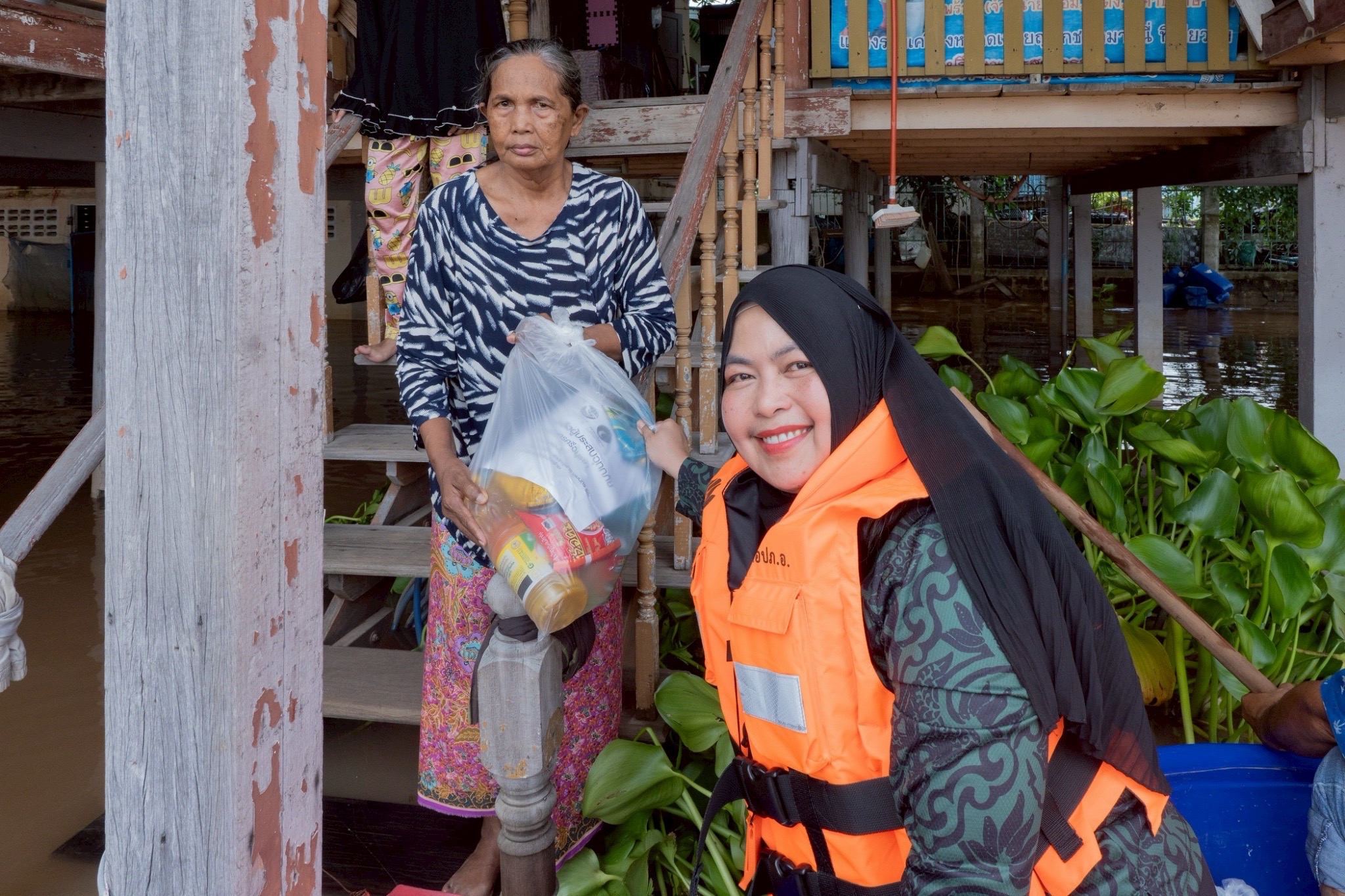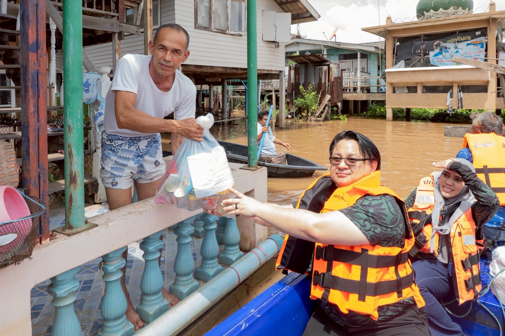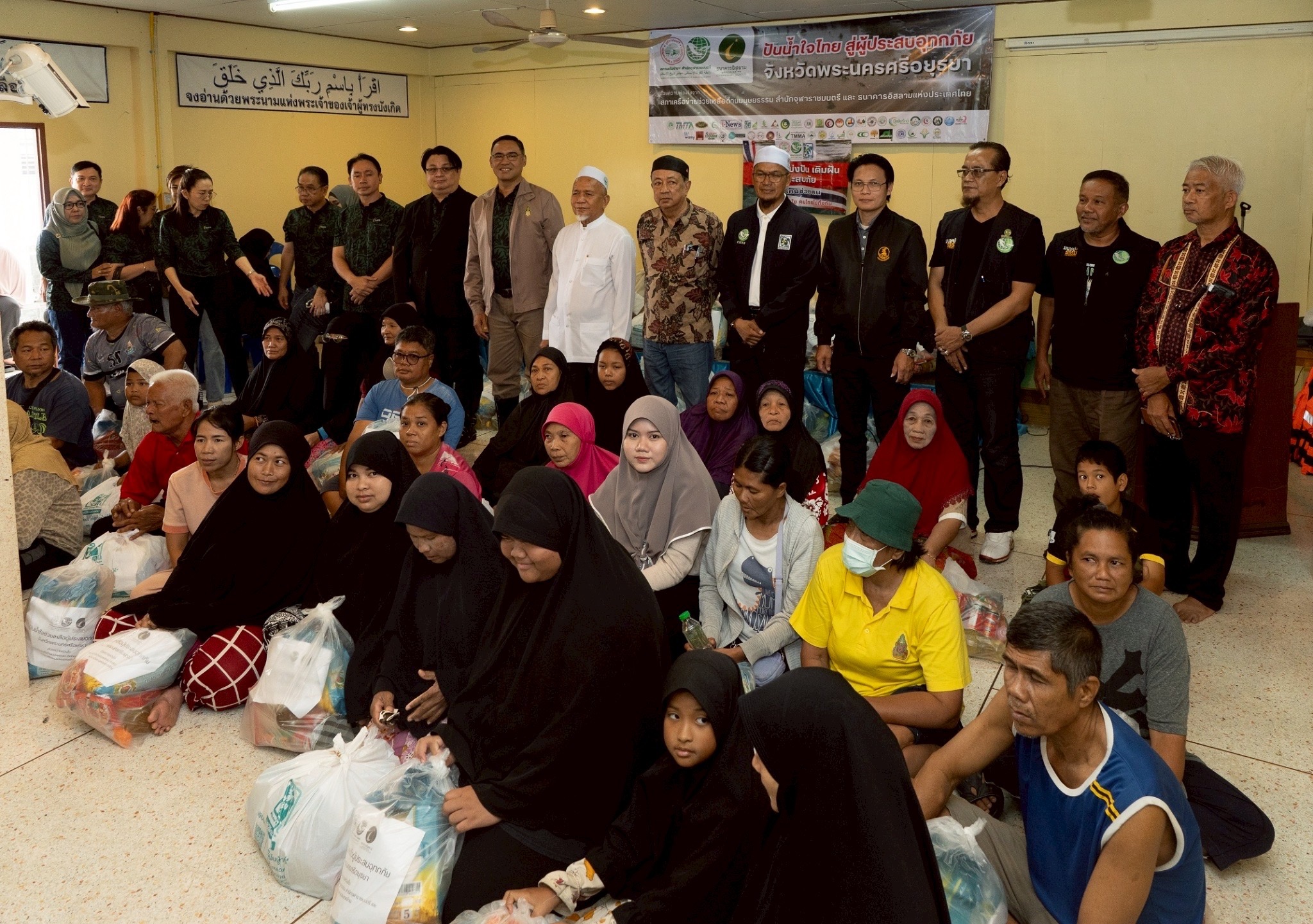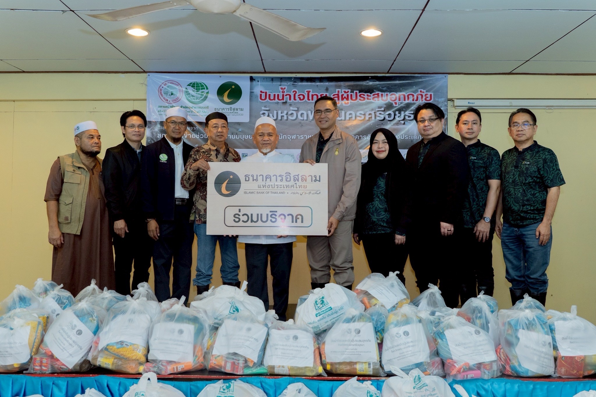 วันนี้ ( 12 ต.ค. 68 ) ธนาคารอิสลามแห่งประเทศไทย (ไอแบงก์) ร่วมกับสภาเครือข่ายช่วยเหลือด้านมนุษยธรรม สำนักจุฬาราชมนตรี และมูลนิธิคนช่วยคน จัดกิจกรรมพิธีส่งมอบถุงยังชีพช่วยเหลือพี่น้องผู้ประสบอุทกภัย จังหวัดพระนครศรีอยุธยา นำโดยคณะผู้บริหารระดับผู้ช่วยกรรมการผู้จัดการธนาคาร ประกอบด้วย นายธีระ ยีโกบ ให้เกียรติกล่าวถึงการมอบความช่วยเหลือในครั้งนี้ นายจักรี บุณยเกียรติ และนางนุจรี ภักดีเจริญ ให้เกียรติเข้าร่วมงาน และนายอิสมาแอน หมัดอะด้ำ รองประธานสภาเครือข่ายช่วยเหลือด้านมนุษยธรรม สำนักจุฬาราชมนตรี กล่าวรายงานวัตถุประสงค์ โดยได้รับเกียรติจาก นายประดิษฐ์ รัตนโกมล ประธานคณะกรรมการอิสลามประจำจังหวัดพระนครศรีอยุธยา กล่าวต้อนรับ นายดำรง พุฒตาล ที่ปรึกษาประธานรัฐสภา และพ.อ.อนันต์ รื่นพิทักษ์ อีหม่ามมัสยิดนูรุ้ลเอี๊ยะซาน ร่วมกล่าวขอบคุณ พร้อมด้วย นายสุรศักดิ์ จำลองกุล ประชาสัมพันธ์จังหวัดพระนครศรีอยุธยา กรรมการอิสลามประจำจังหวัดพระนครศรีอยุธยาให้เกียรติร่วมเข้าร่วมงาน พร้อมด้วยชาวบ้านและพี่น้องสัปปุรุษ รวม 200 ครอบครัวเข้าร่วกิจกรรมรับมอบถุงยังชีพในโอกาสนี้ ณ มัสยิดนูรุ้ลเอี๊ยะซาน ตำบลบ้านพลับ อำเภอบางปะอิน จังหวัดพระนครศรีอยุธยา