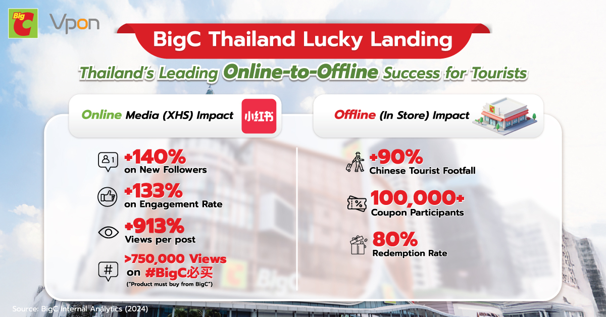 บิ๊กซี ซูเปอร์เซ็นเตอร์ ตอกย้ำความเป็นผู้นำค้าปลีกของไทยคว้ารางวัล ระดับ Gold – Excellence in Retail / Shopper Marketing จากเวที Marketing Excellence Awards 2025 ที่จัดโดยนิตยสาร MARKETING-INTERACTIVE ประเทศสิงคโปร์ ด้วยแคมเปญ “BigC : Global Reach Unleashed” หรือ ที่รู้จักกันในชื่อ BigC Thailand Lucky Landing ซึ่งพัฒนาร่วมกับ Vpon Big Data Group ผู้นำด้าน AI และโซลูชันข้อมูลขนาดใหญ่แห่งเอเชีย โดย Vpon ได้นำความเชี่ยวชาญด้านกลยุทธ์ Cross-Border Marketing มาช่วยผลักดันให้แคมเปญประสบความสำเร็จอย่างโดดเด่น
