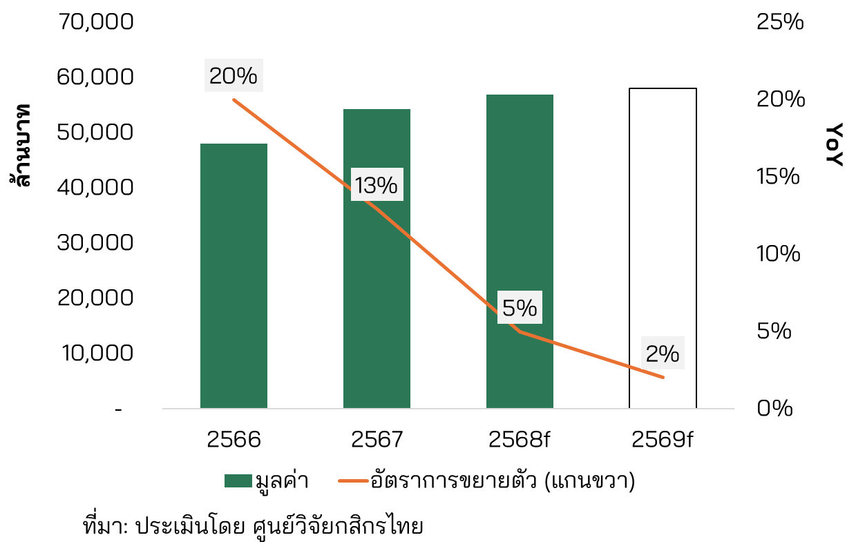 ในปี 2569 มูลค่าตลาดน่าจะยังเติบโตที่ประมาณ 2% จากปี 2568 แต่เป็นการเติบโตที่ชะลอลง ท่ามกลางปัจจัยท้าทายสูงจากทั้งกำลังซื้อ การแข่งขัน ต้นทุน และเทรนด์การบริโภค