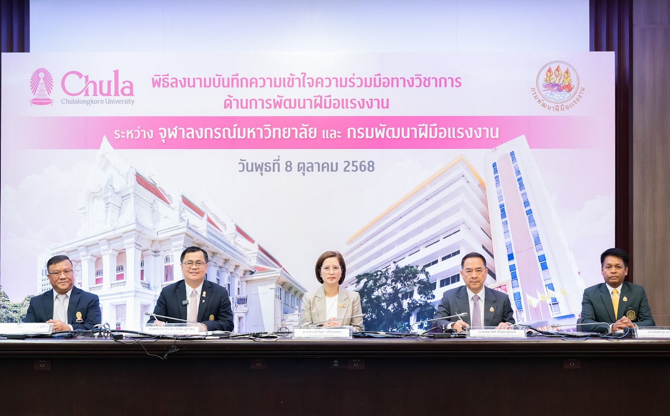 ร่วมมือทางวิชาการด้านการพัฒนาฝีมือแรงงาน โดยได้รับเกียรติจาก รศ.ดร.ศิริเดช สุชีวะ รองอธิการบดีจุฬาฯ และ นายภัทรวุธ เภอแสละ รองอธิบดีกรมพัฒนาฝีมือแรงงาน ร่วมลงนามเป็นสักขีพยาน