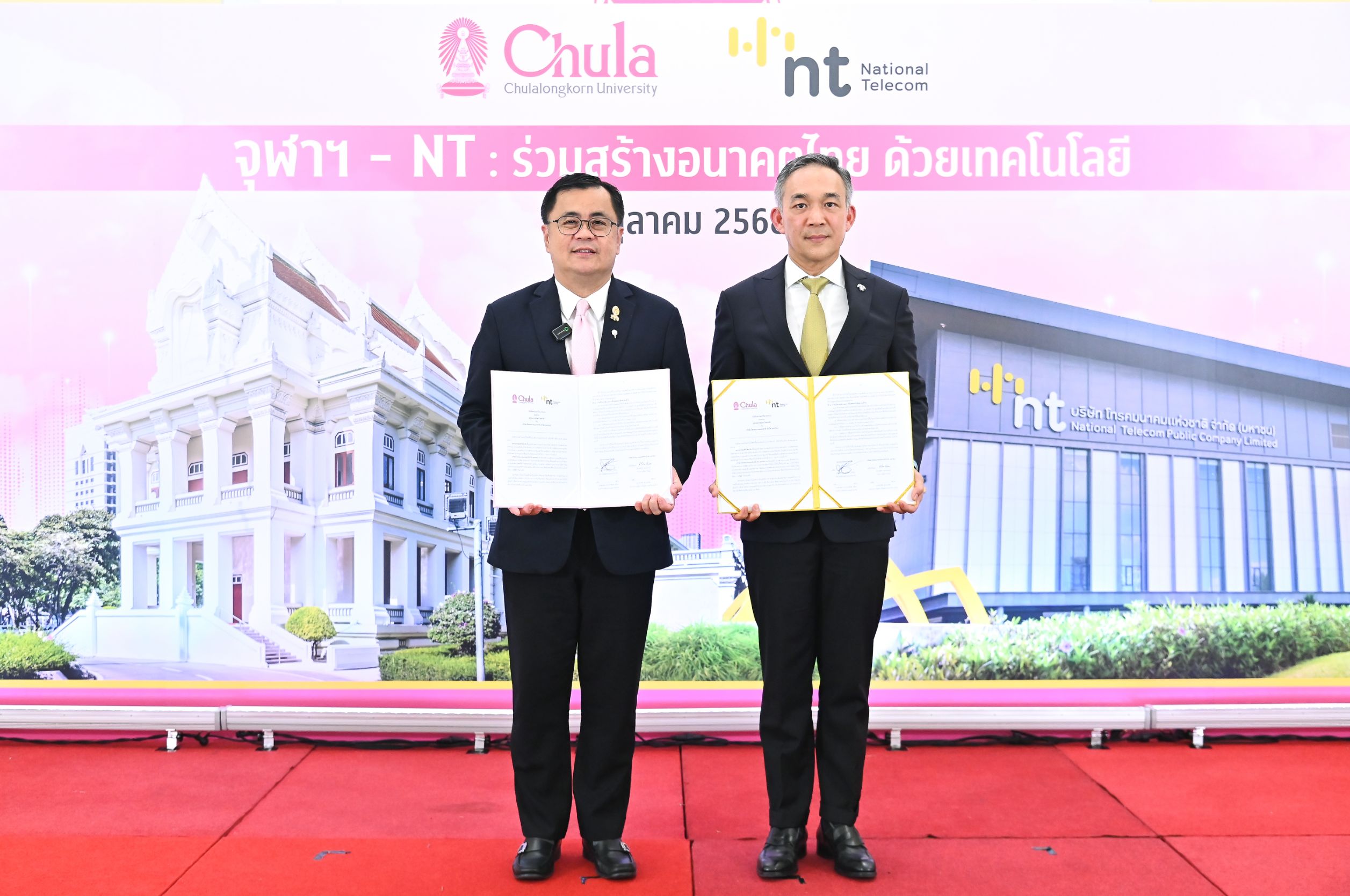 จุฬาลงกรณ์มหาวิทยาลัย ร่วมกับ บริษัท โทรคมนาคมแห่งชาติ จำกัด (มหาชน) หรือ NT ลงนามบันทึกความเข้าใจ (MOU) เพื่อร่วมพัฒนาองค์ความรู้ด้านเทคโนโลยีดิจิทัล สิ่งแวดล้อม และธรรมาภิบาล รวมถึงส่งเสริมการเรียนรู้ตลอดชีวิตและสร้างสังคมแห่งความยั่งยืน โดยมี ศ.ดร.วิเลิศ ภูริวัชร อธิการบดีจุฬาลงกรณ์มหาวิทยาลัย และ พันเอก สรรพชัยย์ หุวะนันทน์ กรรมการผู้จัดการใหญ่ บริษัท โทรคมนาคมแห่งชาติ จำกัด (มหาชน) เป็นประธานในพิธีลงนาม พร้อมด้วย รศ.ดร.ศิริเดช สุชีวะ คณบดีคณะครุศาสตร์ จุฬาฯ และ นายสุปรีดี สุวรรณทัต รองกรรมการผู้จัดการใหญ่สายงานบริหารองค์กร NT ร่วมเป็นสักขีพยาน