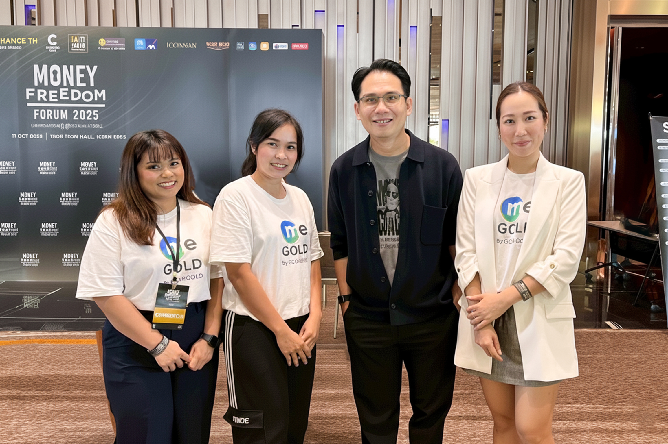 นางสาวเจนจิต ลิ้มธรเบญจพล (ขวา) ผู้จัดการฝ่ายการตลาด พร้อมด้วยทีมการตลาด บริษัท จีแคป จำกัด หรือ GCAP GOLD ผู้นำด้านทองคำรายใหญ่ของไทยที่มีประสบการณ์และความเชี่ยวชาญในการนำเข้าส่งออกทองคำแท่งของไทยกว่า 80 ปี ออกบูธภายในงาน Money Freedom Forum 2025 “มหกรรมความรู้ สู่อิสรภาพการเงิน” จัดโดย Money Coach และ CREATIVE TALK โดยภายในงาน GCAP GOLD ได้แนะนำแอปพลิเคชัน สำหรับลงทุนทองคำ ภายใต้ “ME GOLD” by GCAP GOLD ให้กลุ่มนักลงทุนที่ร่วมงานได้มีทองง่าย สะดวก และปลอดภัย ผ่านแอปพลิเคชันดังกล่าว เพื่อตอบโจทย์นักลงทุนยุคดิจิทัล ให้เข้าถึงการลงทุนทองคำได้ง่าย และสามารถซื้อ-ขาย หรือ ออมทองคำ เริ่มต้นด้วยเงินเพียง 100 บาท ได้ทุกที่ทุกเวลาแค่เพียงคลิกปลายนิ้ว ณ TRUE ICON HALL ชั้น 7 ICONSIAM