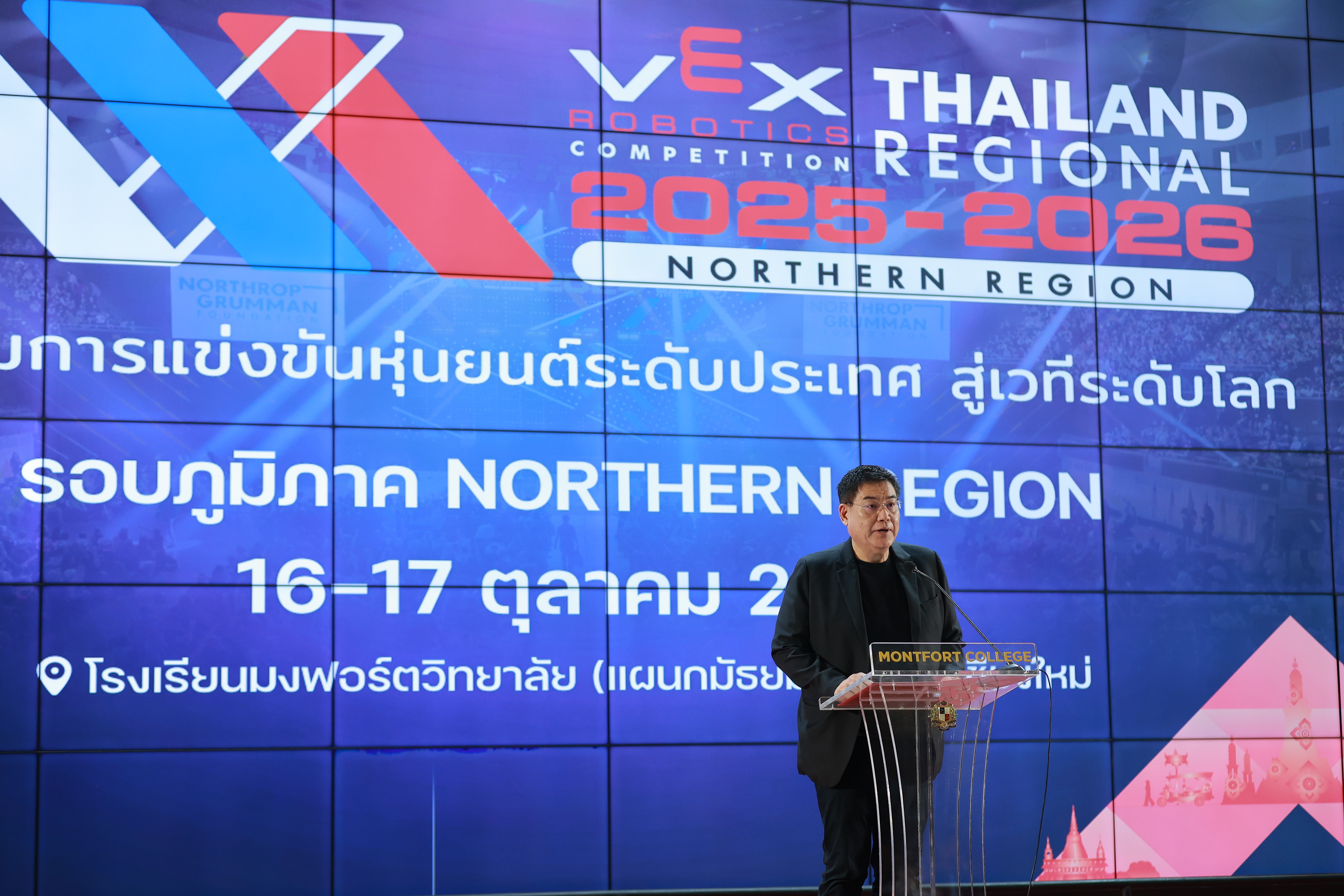 ด้าน ภราดา ดร.ศราวุธ ยุชมภู รองผู้อำนวยการ โรงเรียนมงฟอร์ตวิทยาลัย จังหวัดเชียงใหม่ เสริมว่า โรงเรียนมงฟอร์ตวิทยาลัยให้ความสำคัญกับการพัฒนาเยาวชนให้พร้อมต่อการเปลี่ยนแปลงของโลกยุคดิจิทัล โดยเฉพาะการเรียนรู้ด้าน Coding และ Robotics ที่ถือเป็นทักษะแห่งอนาคต การเป็นเจ้าภาพการแข่งขัน VEX Robotics Competition Thailand Regional 2025–2026 | Northern Region ในปีนี้ จึงเป็นอีกหนึ่งก้าวสำคัญในการเปิดโอกาสให้นักเรียนรวมถึงเยาวชนจากโรงเรียนต่าง ๆ ในภาคเหนือ ได้เรียนรู้ผ่านประสบการณ์จริงและลงมือทำด้วยตนเอง โรงเรียนมงฟอร์ตวิทยาลัยภาคภูมิใจที่ได้เป็นศูนย์กลางของการเรียนรู้ด้านนวัตกรรมในภาคเหนือ โดยหวังว่าการแข่งขันครั้งนี้จะเป็นแรงบันดาลใจให้เยาวชนทุกคนเห็นคุณค่าของการเรียนรู้เชิงเทคโนโลยีและนำความรู้ไปต่อยอดเพื่อสังคมในอนาคต